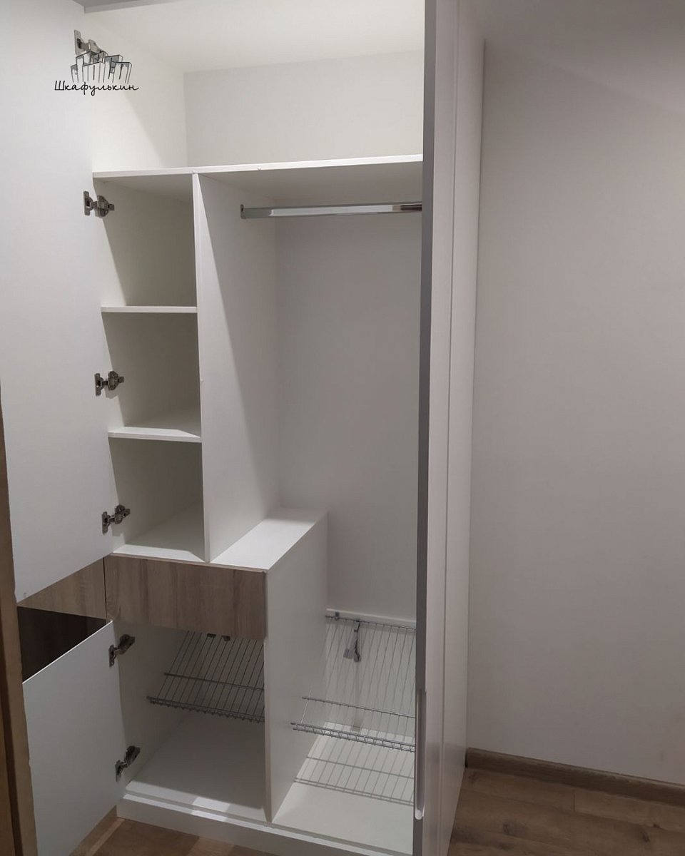 Фасад распашной: 3 шт. / МДФ 19мм / покраска: RAL 9016 односторонняя матовая / ручка интегрированная.
