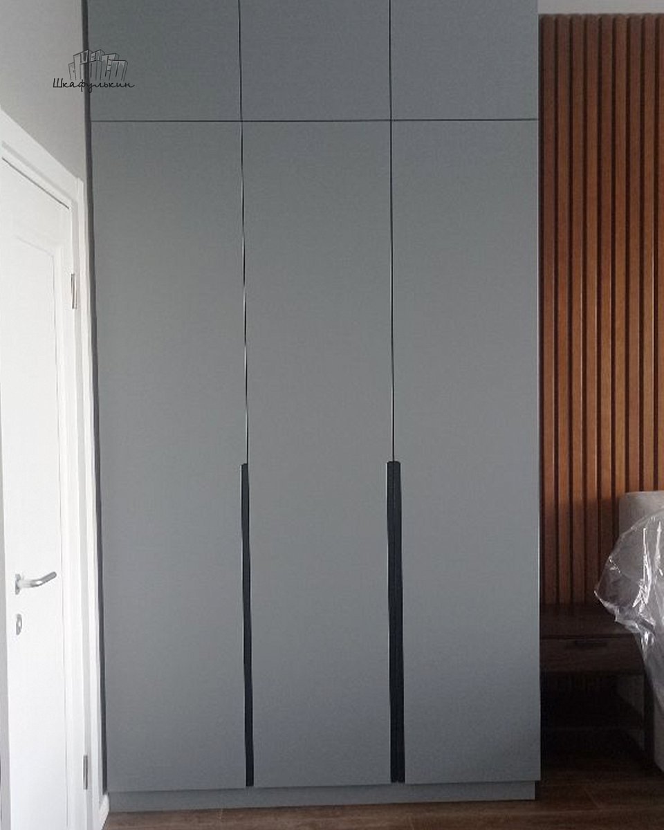 Фасад распашной: 3 шт. / МДФ 19мм / плоский / покраска: RAL 7001 односторонняя матовая.