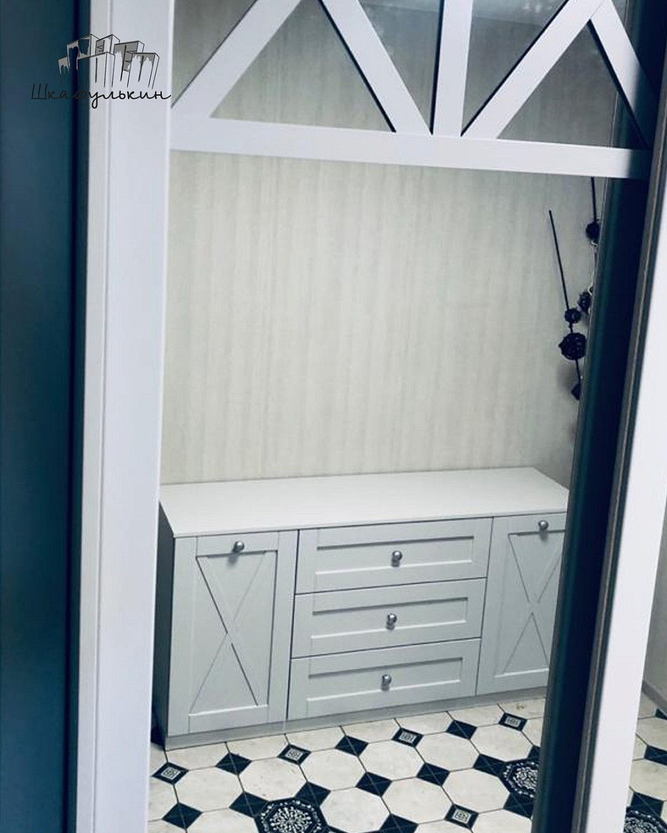Двери распашные - 2шт, Материал - МДФ 19мм, фрезеровка Кантри, крашенные с 2-х сторон, цвет - RAL 7047 матовый