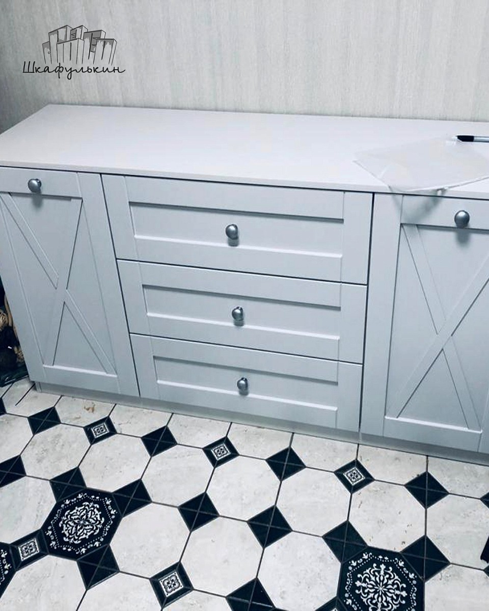Фасад ящиков - МДФ 19мм фрезеровка , крашенный с 1й стороны, цвет - RAL 7047 матовый