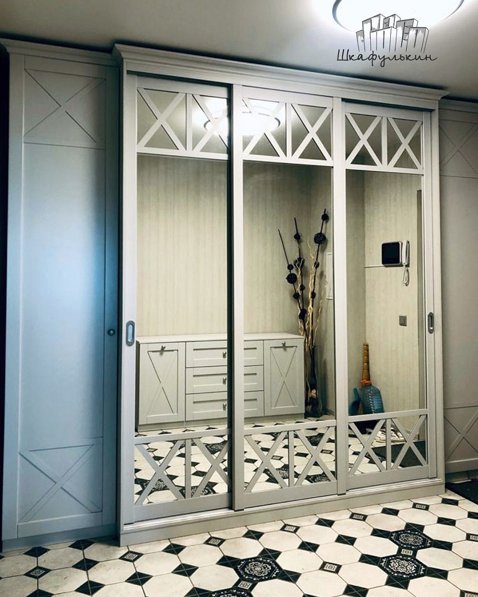 Двери купе - 3 шт., Профиль - HOLZ крашенный, цвет - RAL 7047 матовый