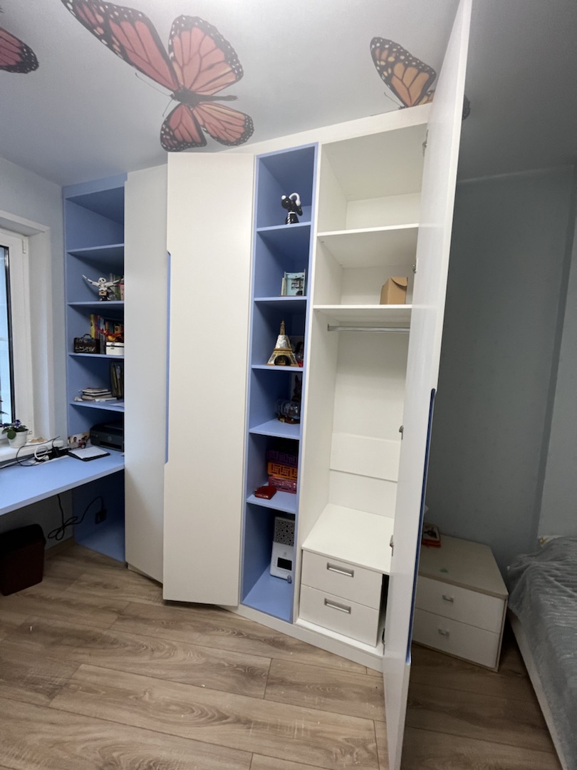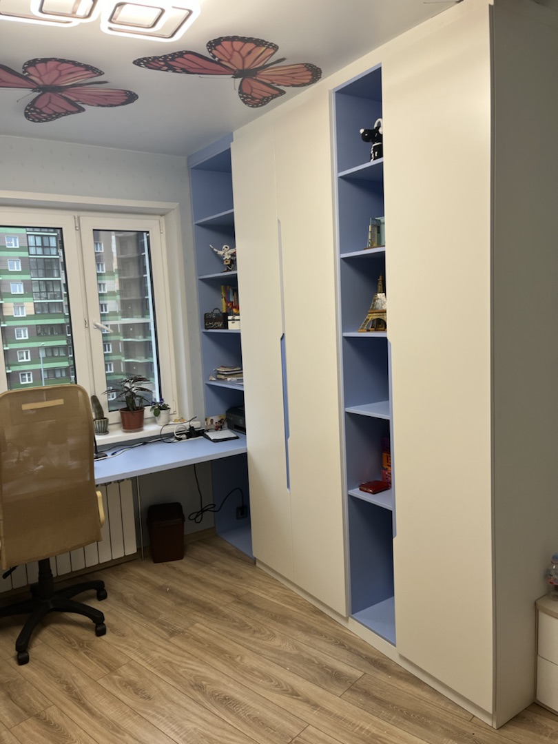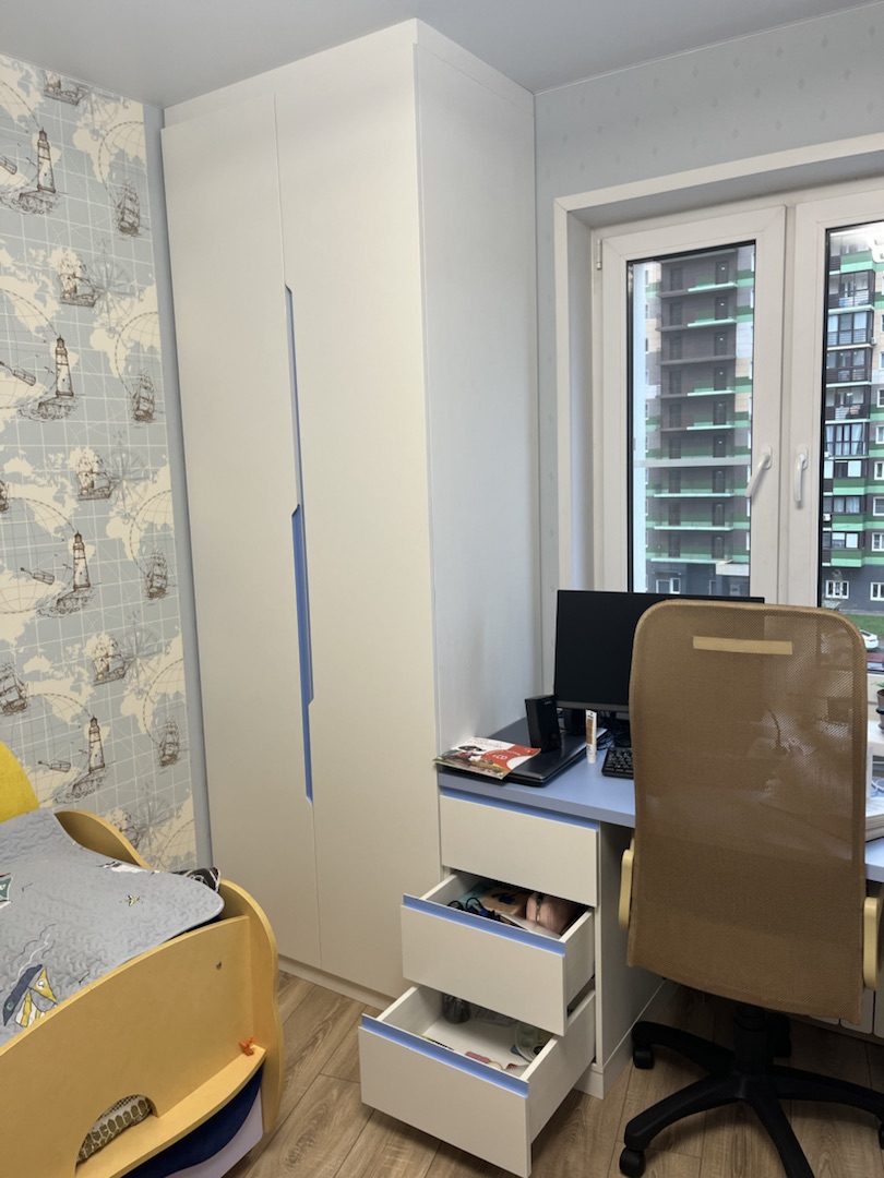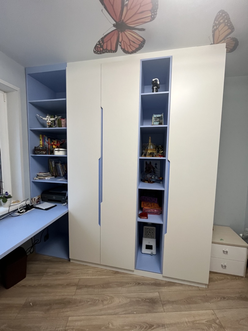 Корпус: ЛДСП Egger W980 ST2 белый и U522 ST9 голубой.