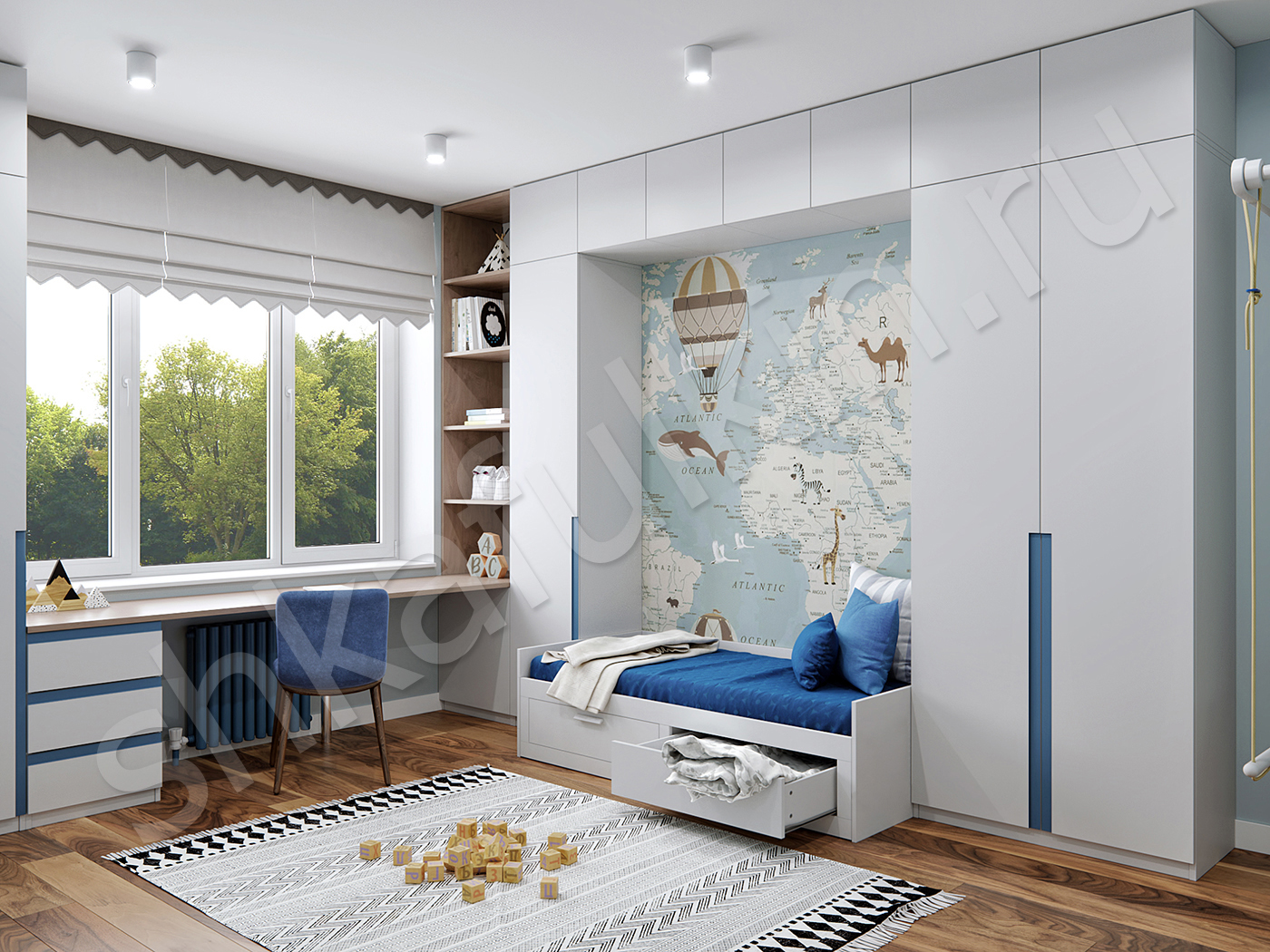 Размер шкафа на фото (Ш/В/Г): 3200х3900х2800, глубина 550 мм.