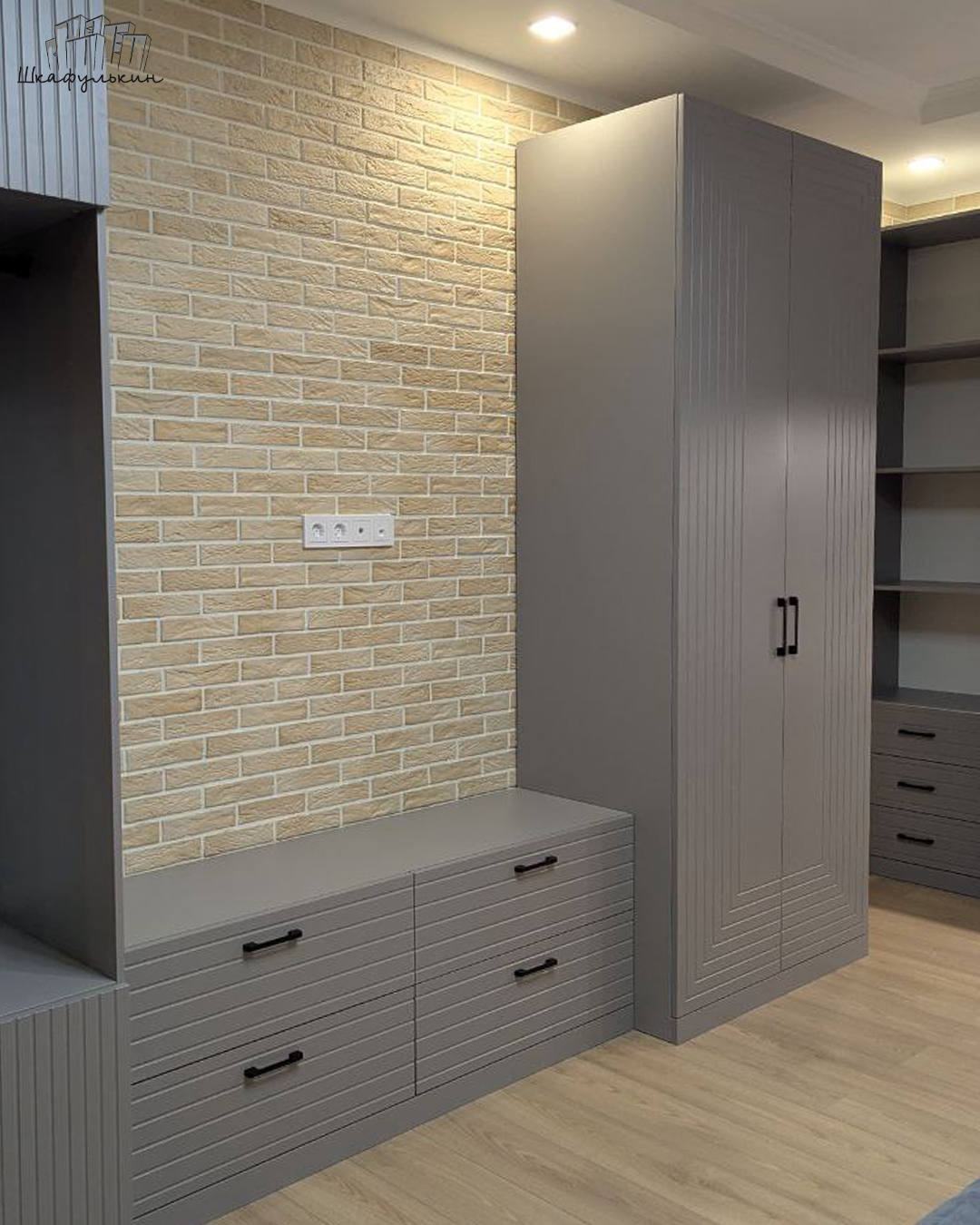 Фасады: МДФ с фрезеровкой, крашенная по NCS.