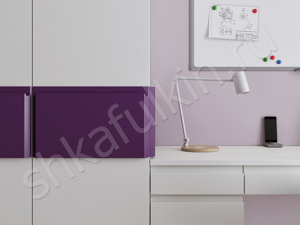Фасады ящиков выдвижных: МДФ с интегрированной ручкой, крашенные в белый цвет.