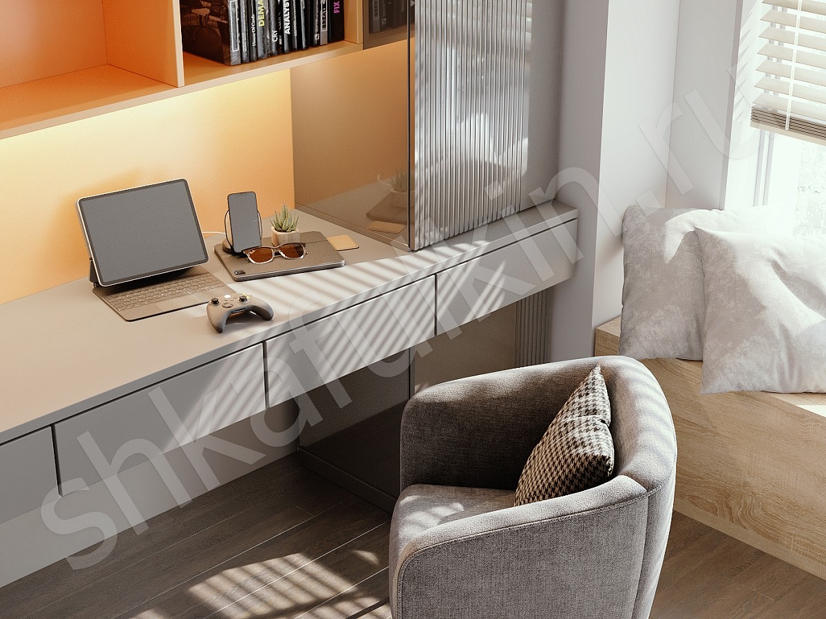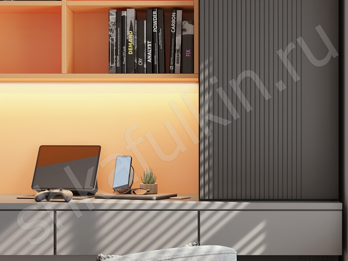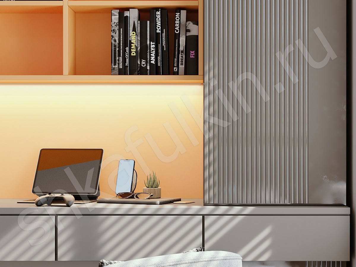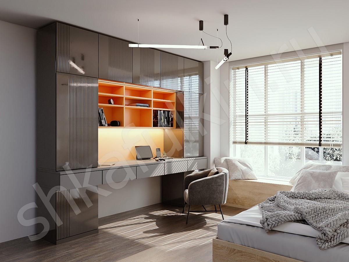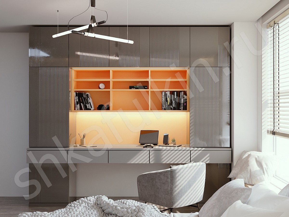 Фасад: МДФ глянец с фрезеровкой ШОНДЕР цвет по RAL 7039.