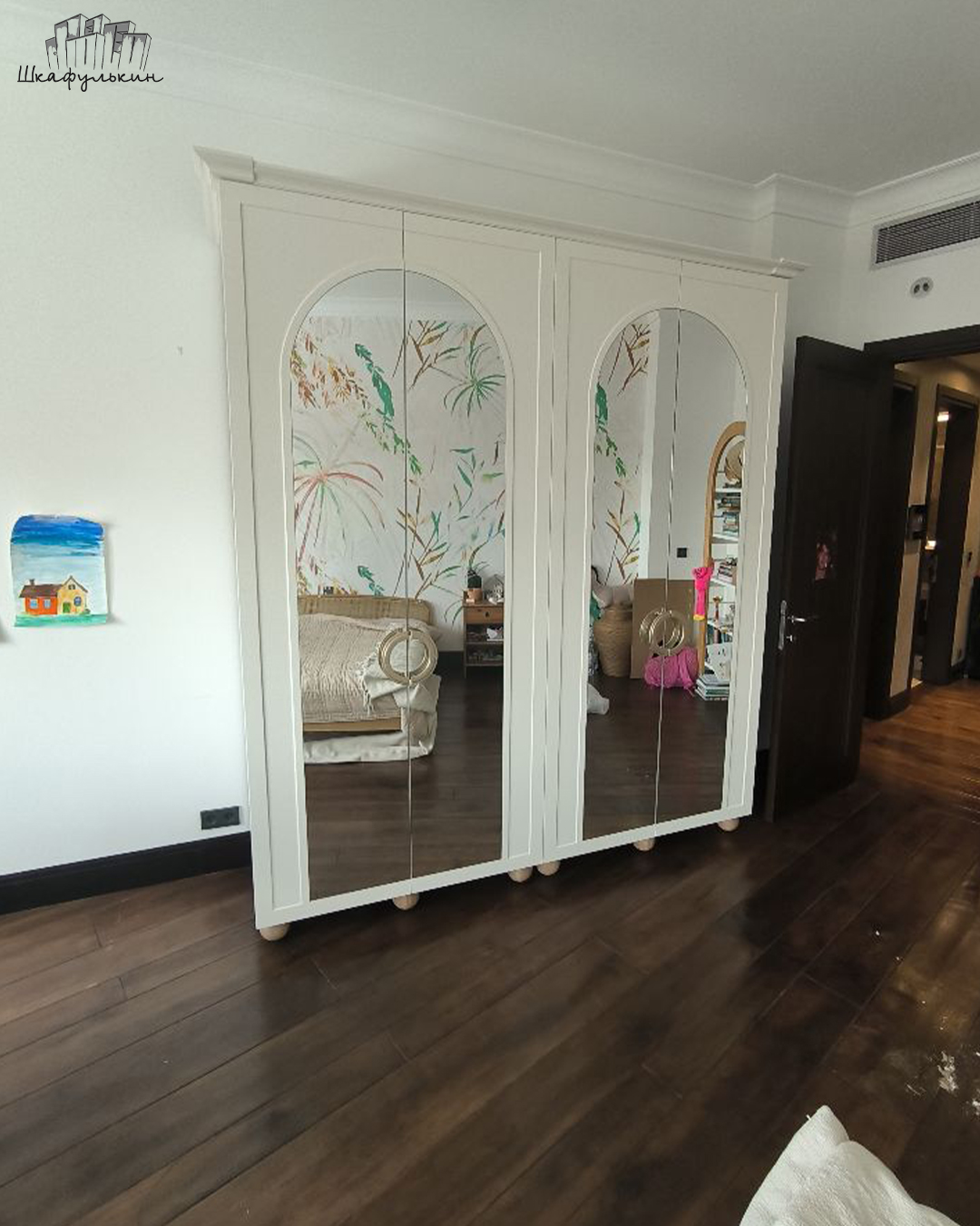 Фасады: МДФ c фрезеровкой крашеный по NSС, с зеркальными вставками.