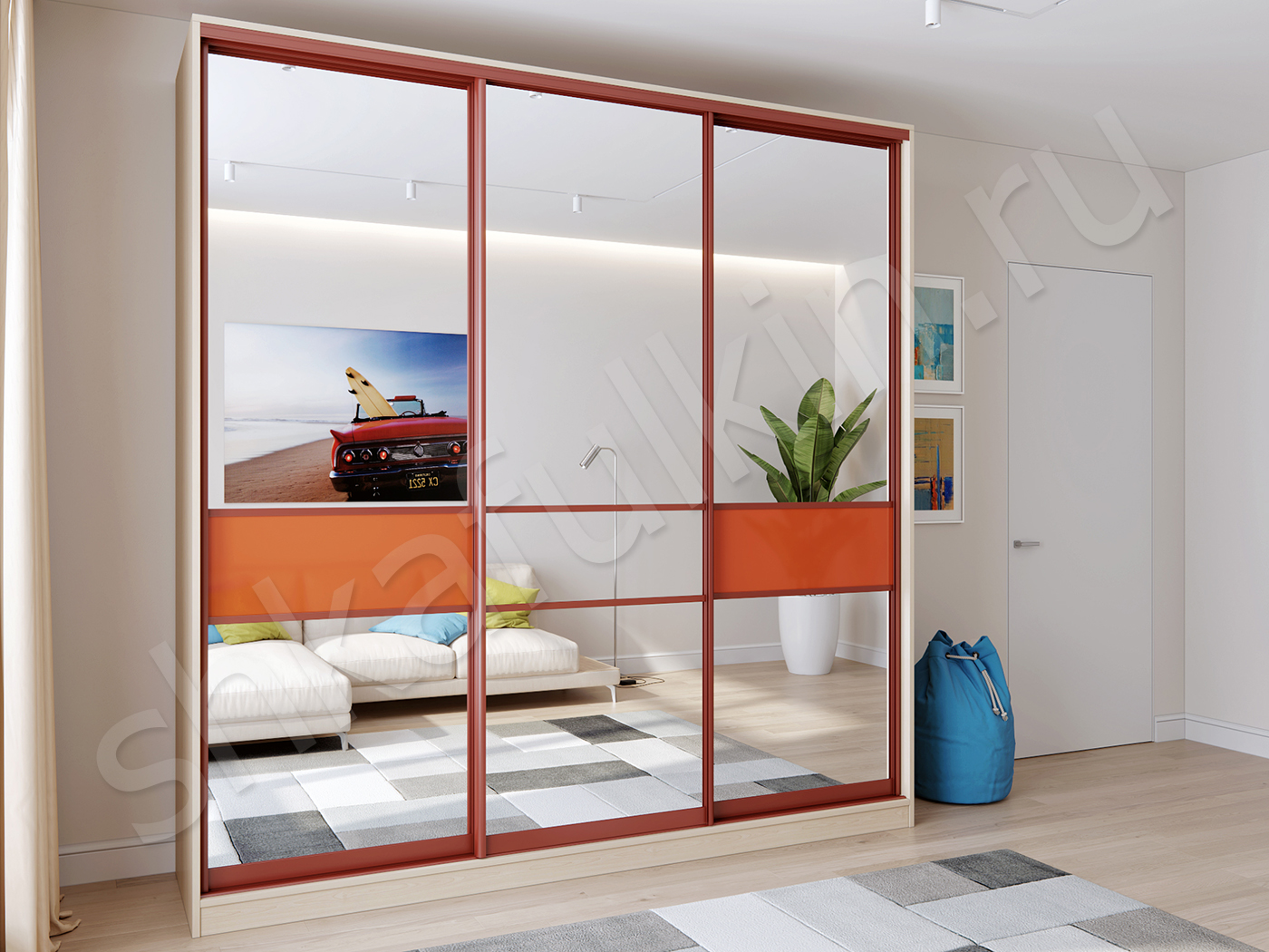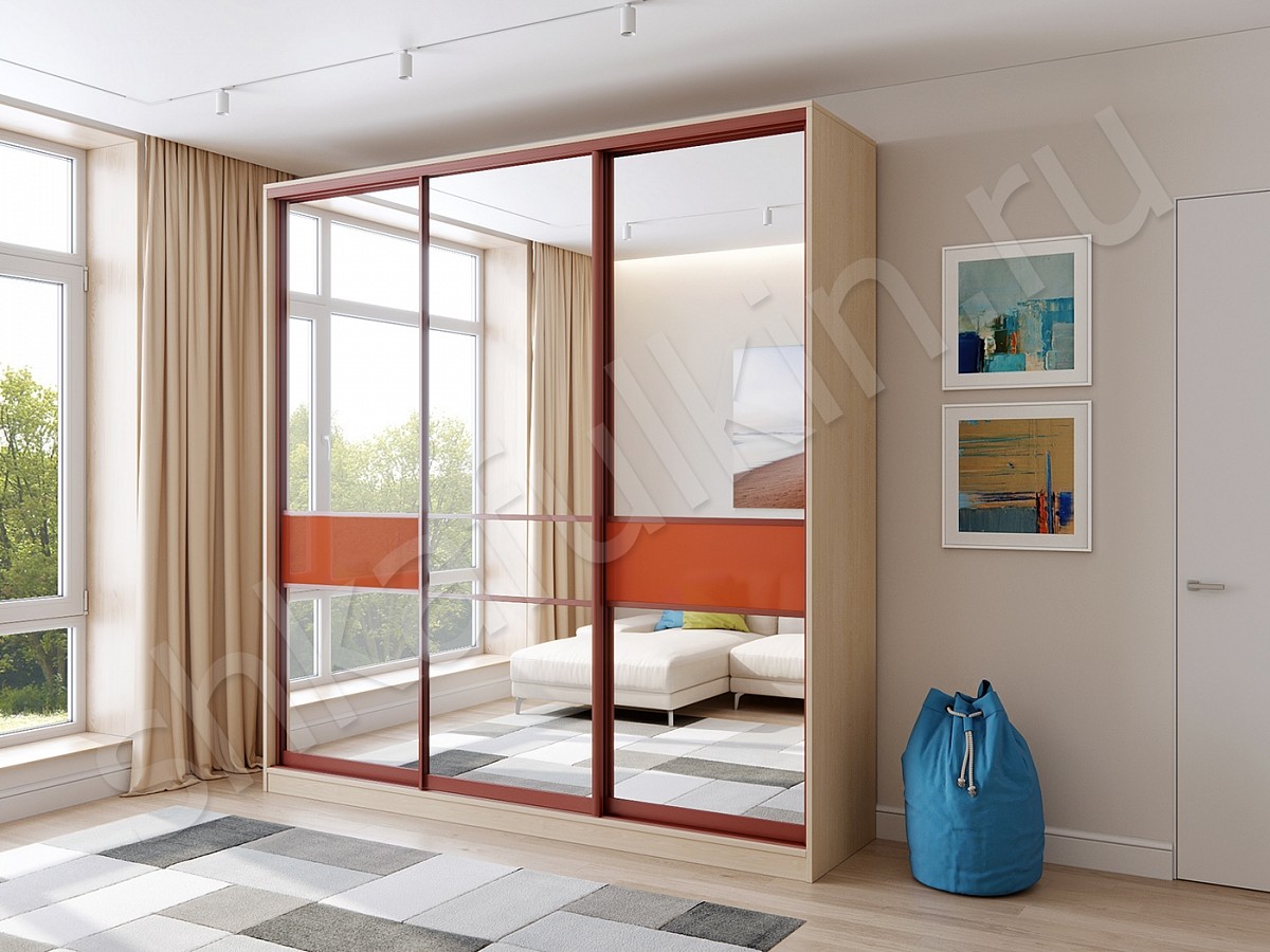 Двери: зеркало со вставкой из кожи на выбор, тихоходные ролики.