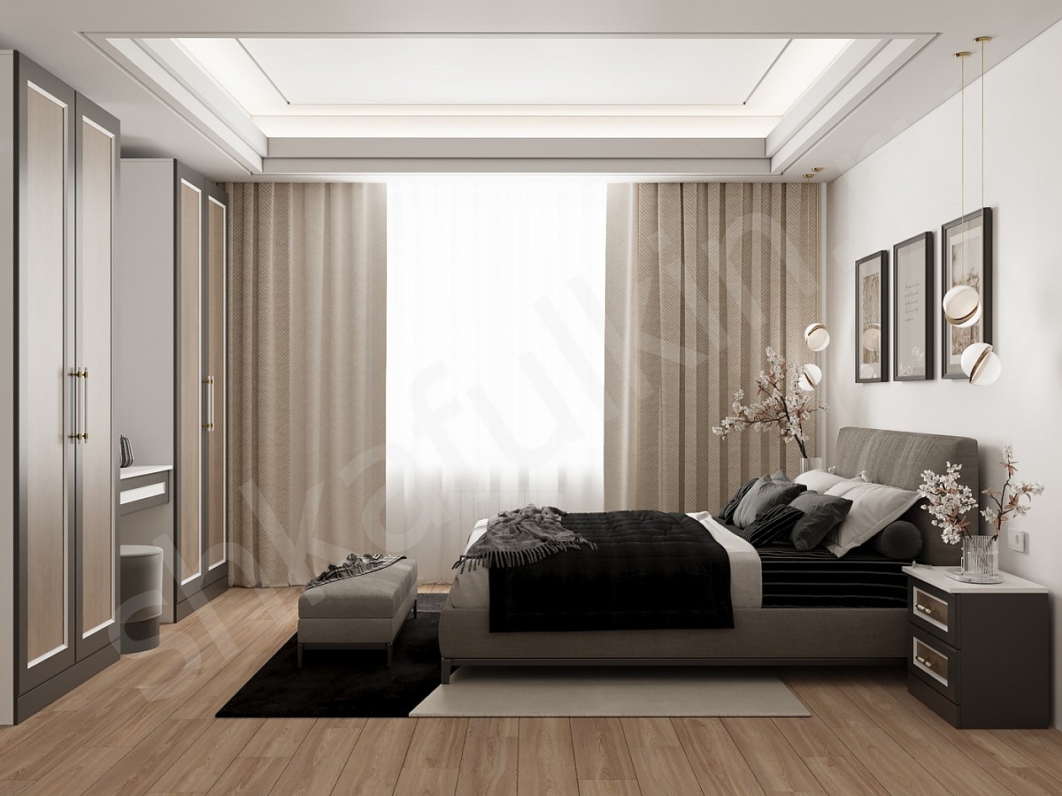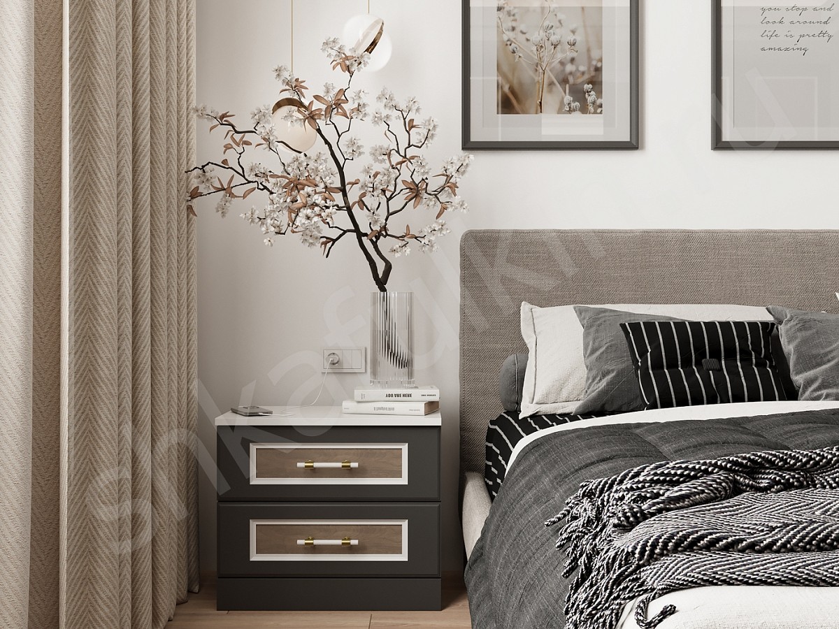 Фасады: МДФ с фрезеровкой покрашенная по NCS и вставкой МДФ шпон.