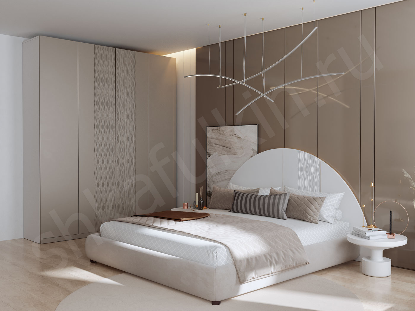 Изголовье: МДФ с фрезеровкой крашенный по NCS S0500-N.
