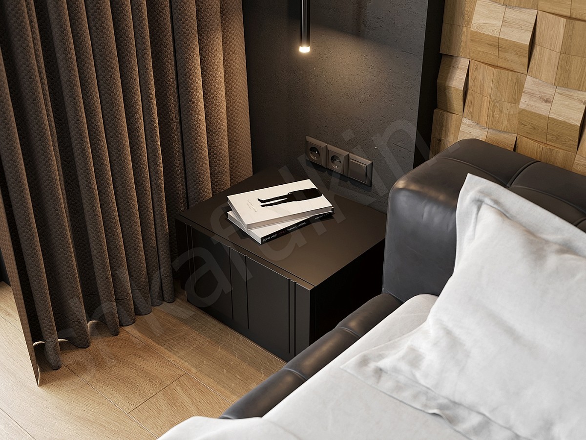 Подобранная в черной гамме мебель и отделка с различными фактурами может стать основой необычного эклектичного интерьера. И чем больше материалов будет использовано при оформлении обстановки (темное дерево, плитка, мозаика, панели из камня), тем интересней получится проект.