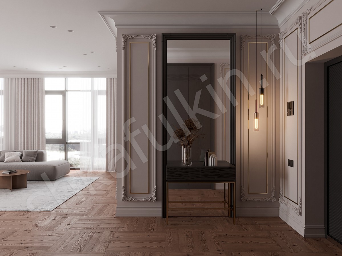 Такую прихожую декорируют ярким освещением, а это делает обстановку праздничной.