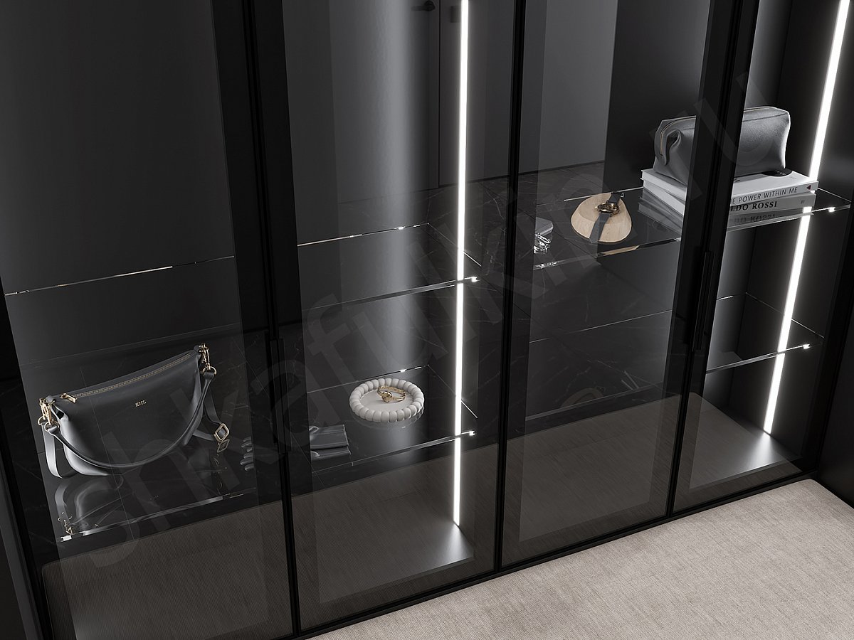 Фасады: алюминиевая рама со стеклом, цвет черный.
