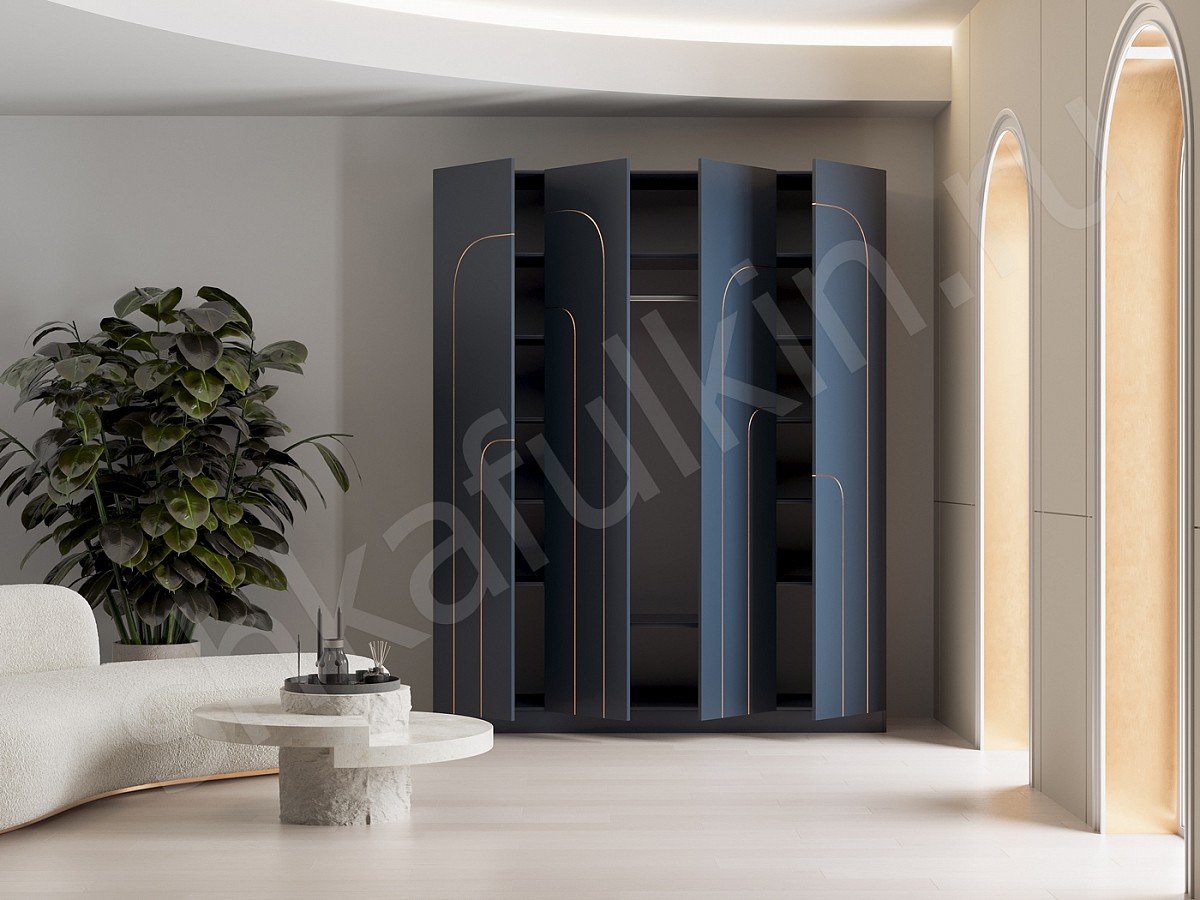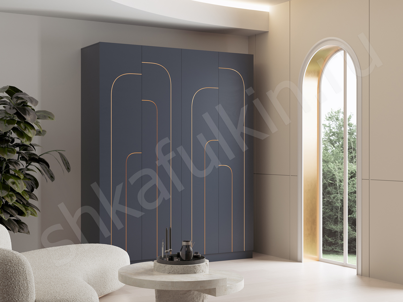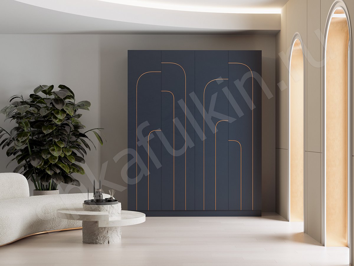 Материал фасадов: МДФ с фрезеровкой крашенный по NCS с золотой патиной.