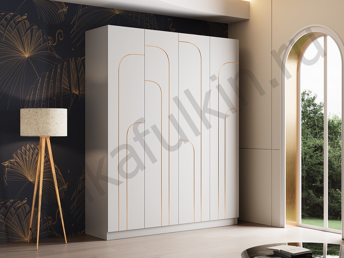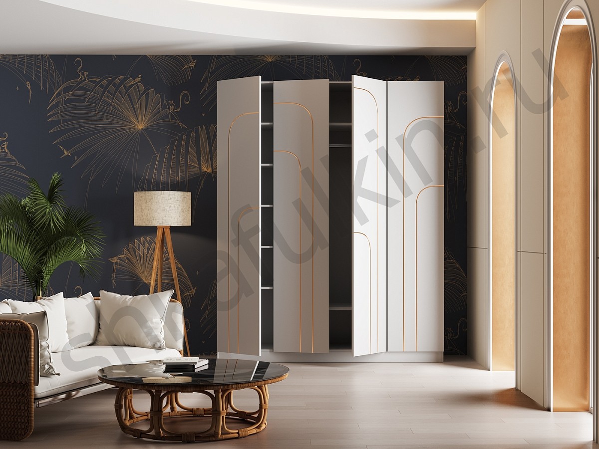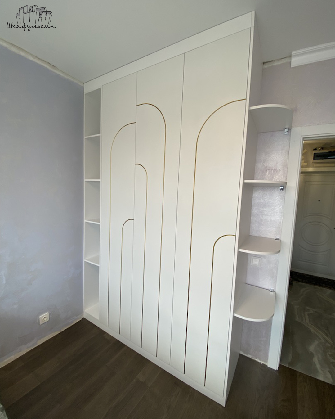 Материал фасадов: МДФ с фрезеровкой крашенный по NCS с золотой патиной.