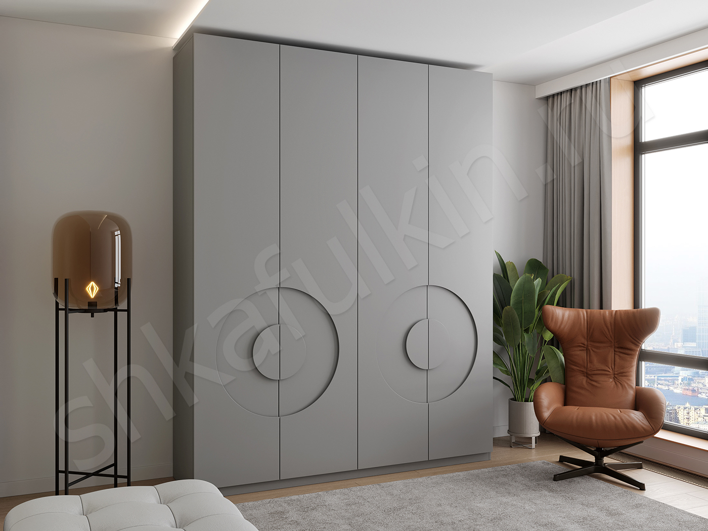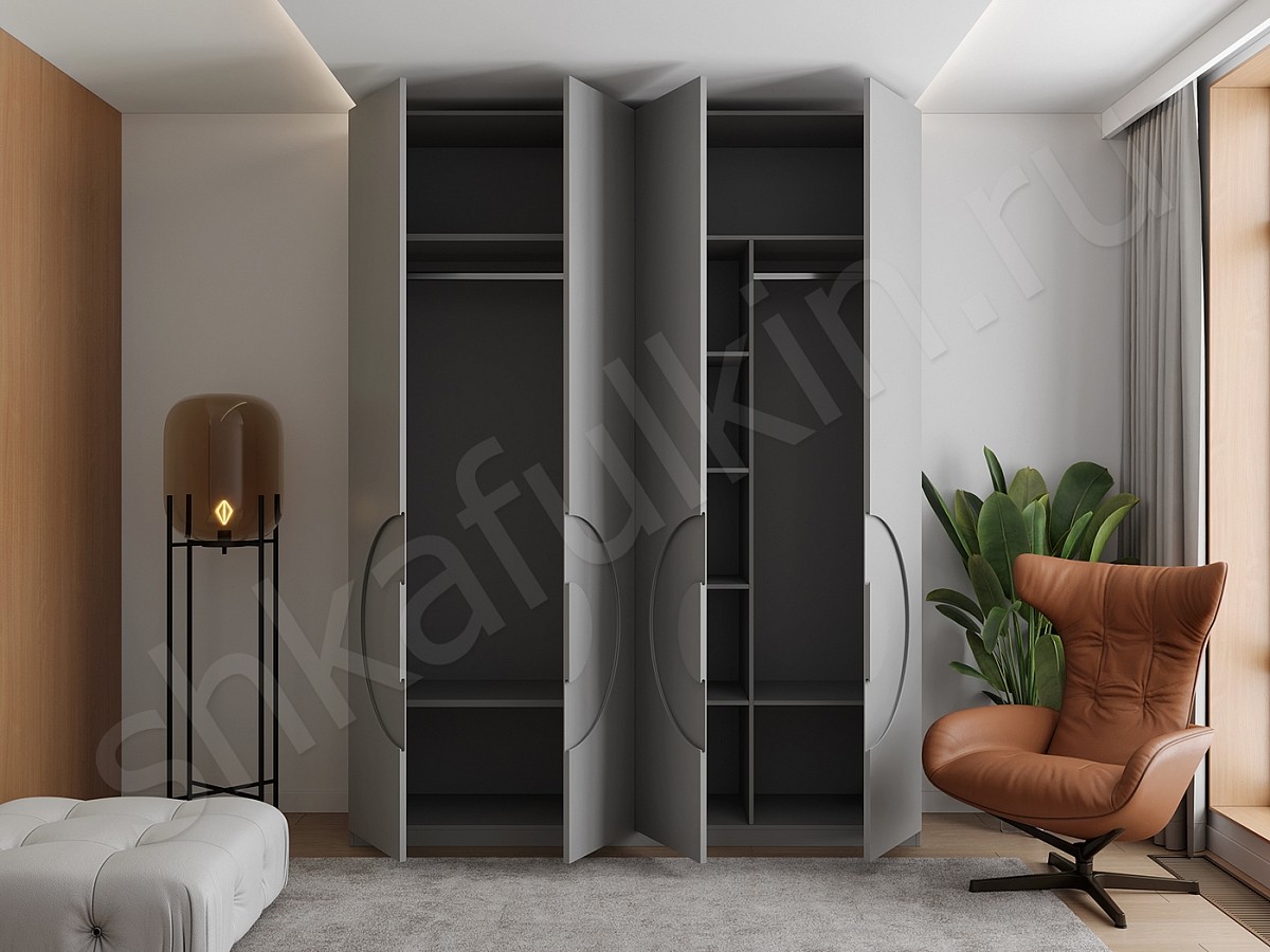 Вместительный четырехдверный шкаф Меридиан с интегрированными ручками на створках.