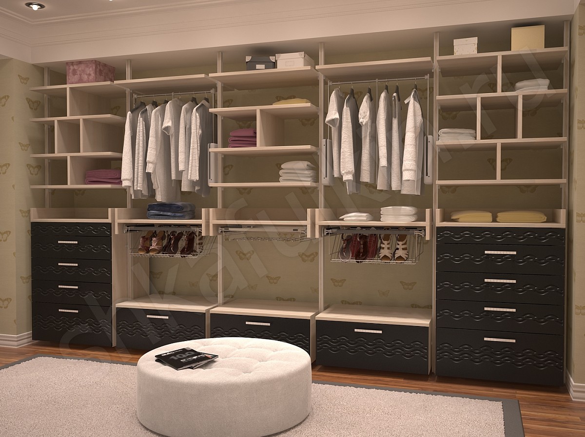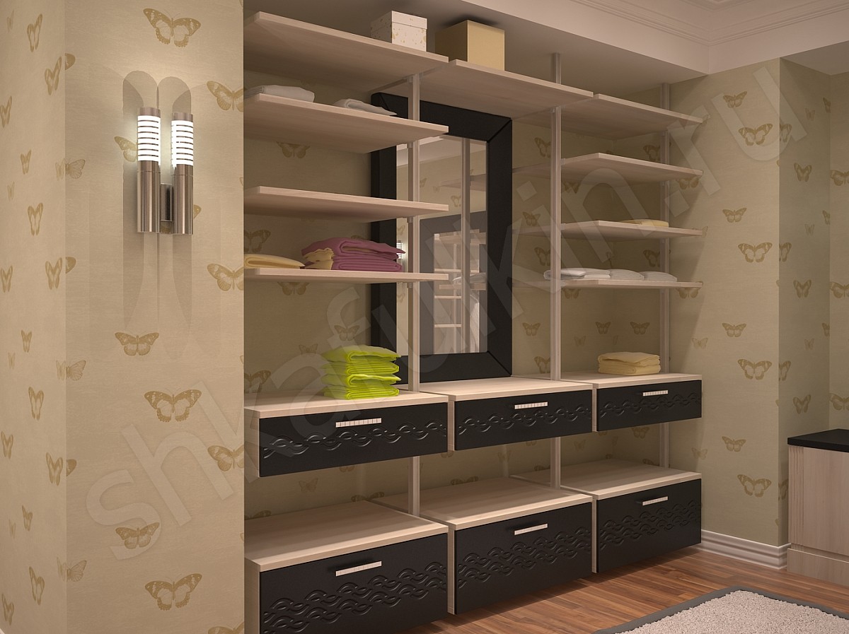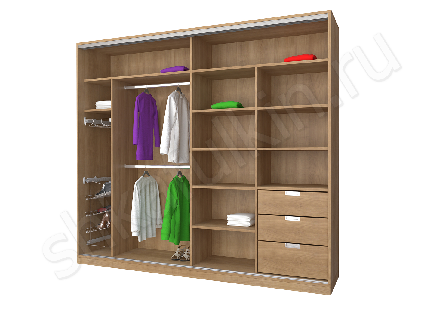 Наполнение: пантографы, полки, обувницы, галстучницы, брючницы.