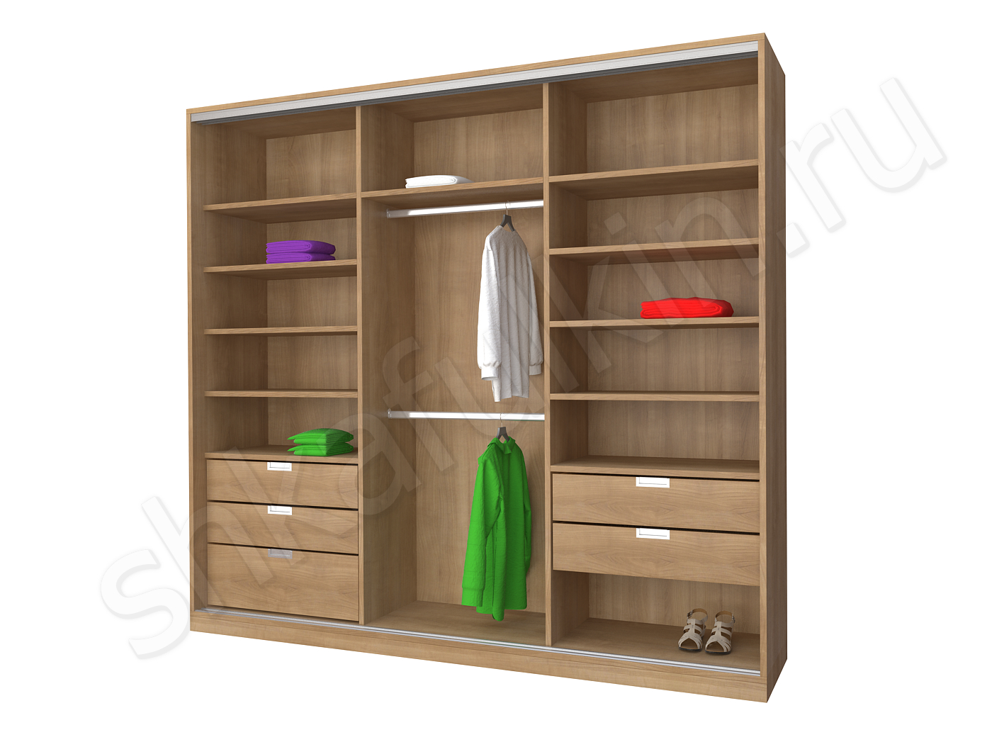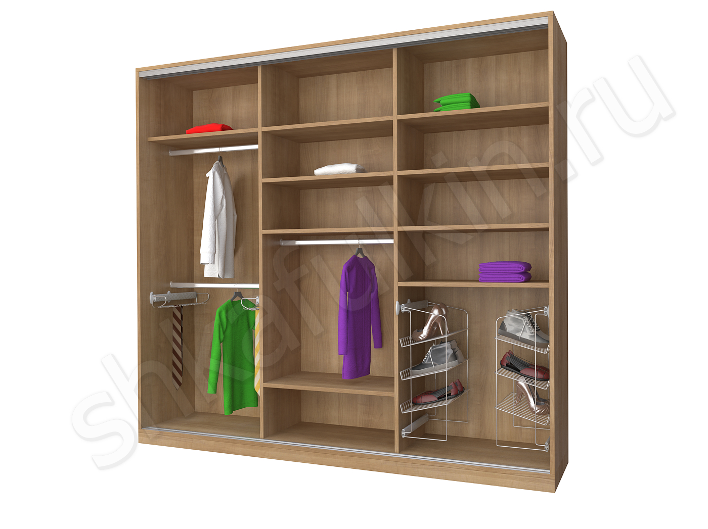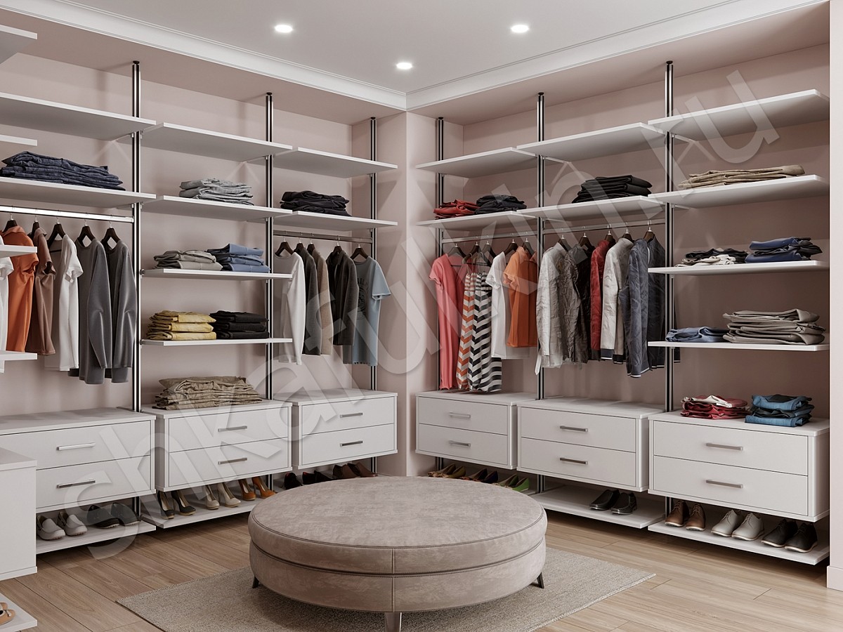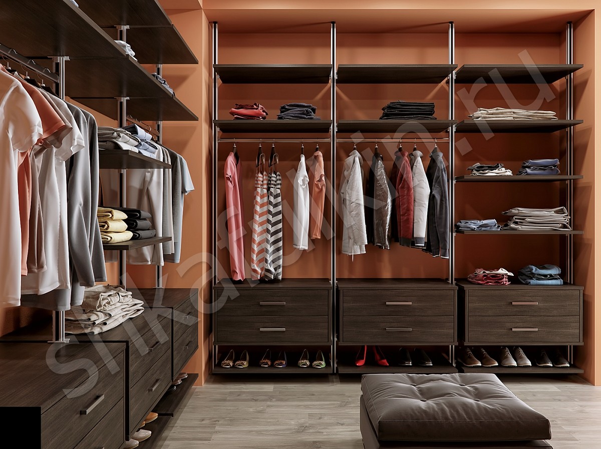 Легкая и просторная модель гардеробной Гарни отличается большой вместительностью и практичностью. Отличный вариант для обустройства гардеробной комнаты. Открытые полки для одежды и закрытые выдвижные ящики - идеальное сочетание для практичных людей.