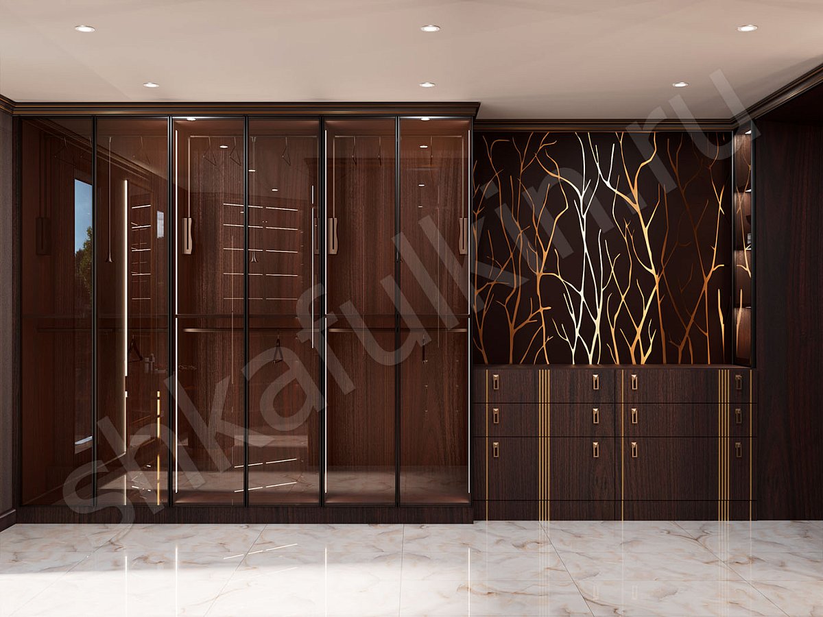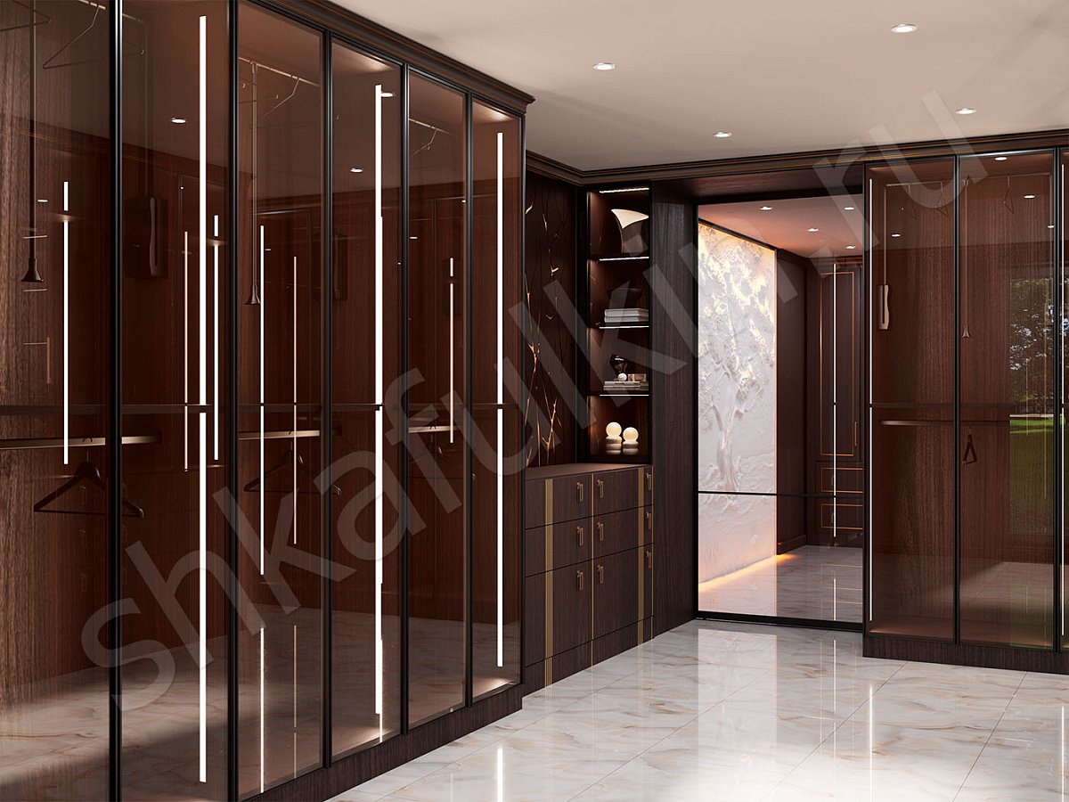 Фасады: МДФ шпон/алюминиевый профиль со стеклом.
