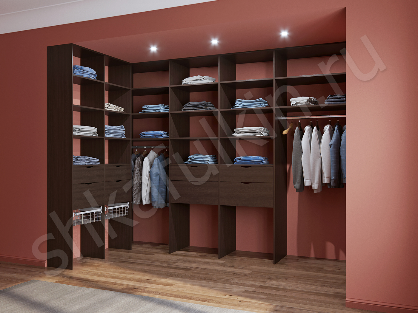 Наполнение: штанги, ящики, обувницы, брючницы.