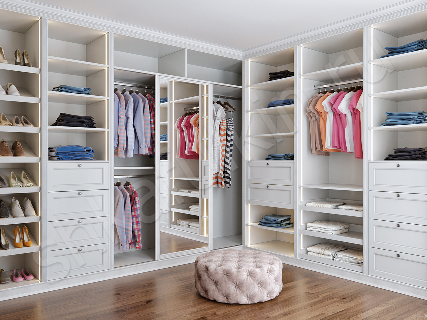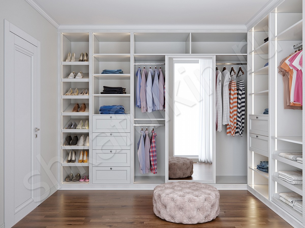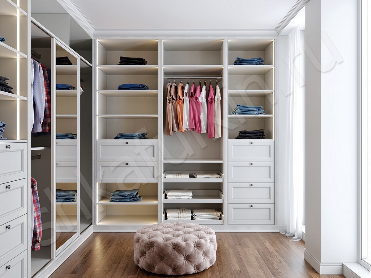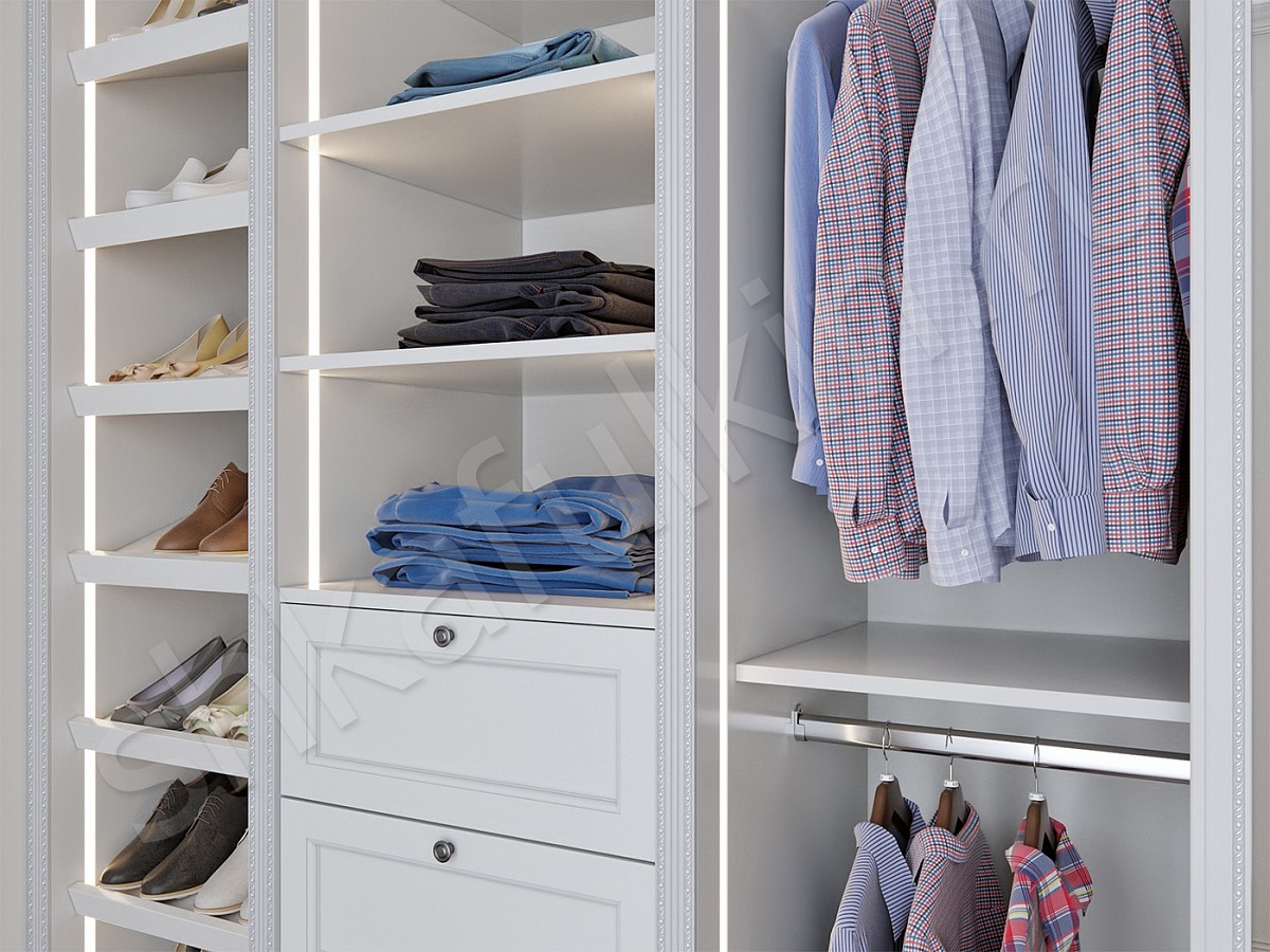 Белый цвет по праву считается классическим. Именно он часто используется в домах, где хозяева затеяли реализовать классический интерьер. Мебель светлых оттенков очень практична в уборке и стильно смотрится в любые времена. Гардеробная комната поможет освободить жилую площадь дома от тяжелых и громоздких стенок и массивных шкафов. Суть гардеробной комнаты – система хранения предметов, находящаяся в отдельном помещении или же отдельная часть большого пространства, отгороженная с помощью дверей-купе. Дизайнеры компании "Шкафулькин" помогут подобрать Вам подходящий вариант по дизайну и функциональности, подберут необходимую фурнитуру и комплектующие.