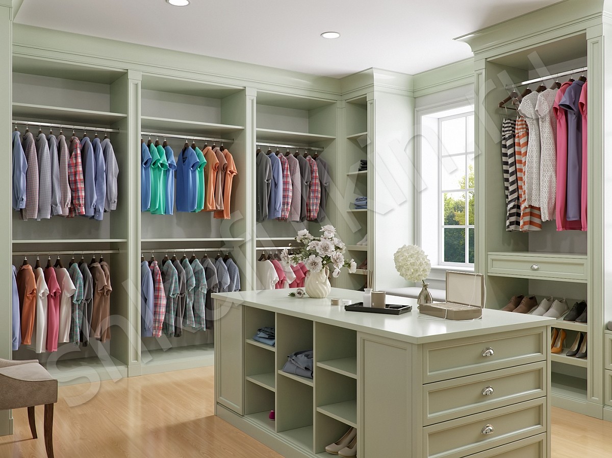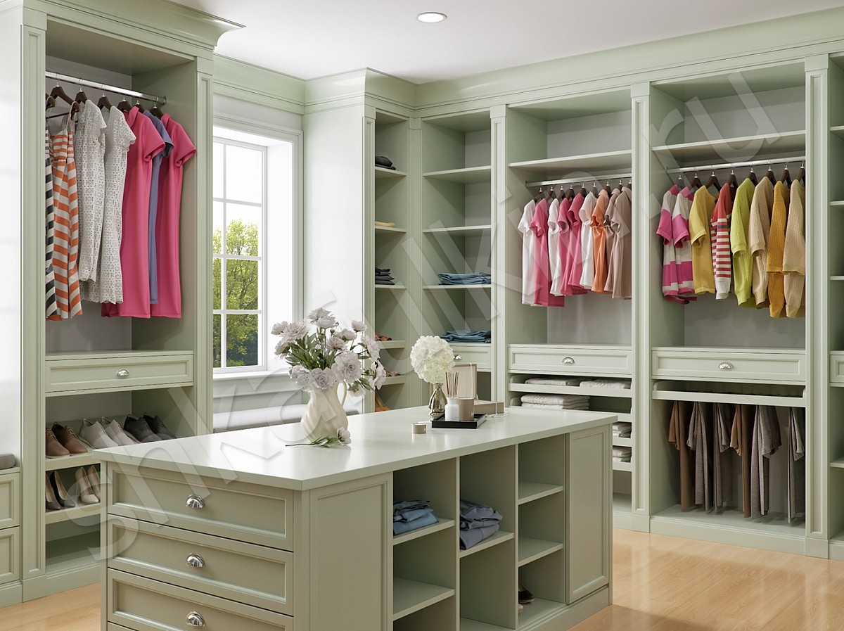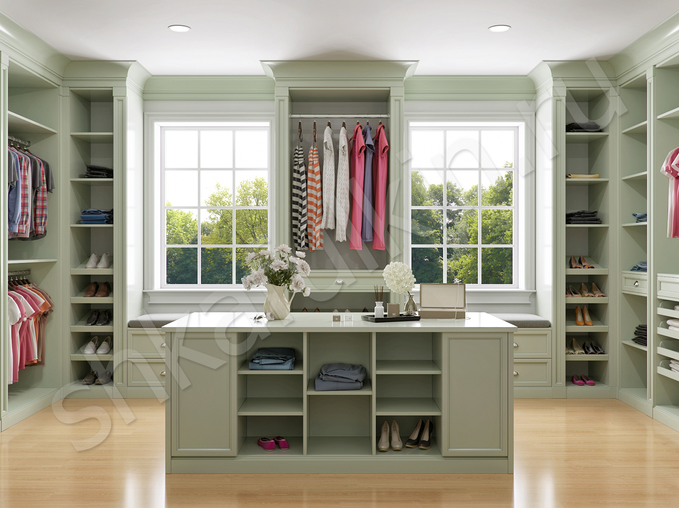 Прекрасная и нежная гардеробная "Оливия" придется по вкусу утонченной натуре. Функциональное расположение полок, ящиков и штанг делают помещение удобным и практичным. Естественный оливковый оттенок выбран не случайно, как более сложный оттенок зеленого, он прекрасно влияет на психику, способствует успокоению глаз и нервной системы. Оливковый цвет имеет свойство поглощать свет, именно поэтому оформить гардеробную комнату лучше в сочетании с белым. Не стоит забывать и про грамотное распределение света. Большие окна или мощные лампы в потолке помогут грамотно решить такую простую задачу.