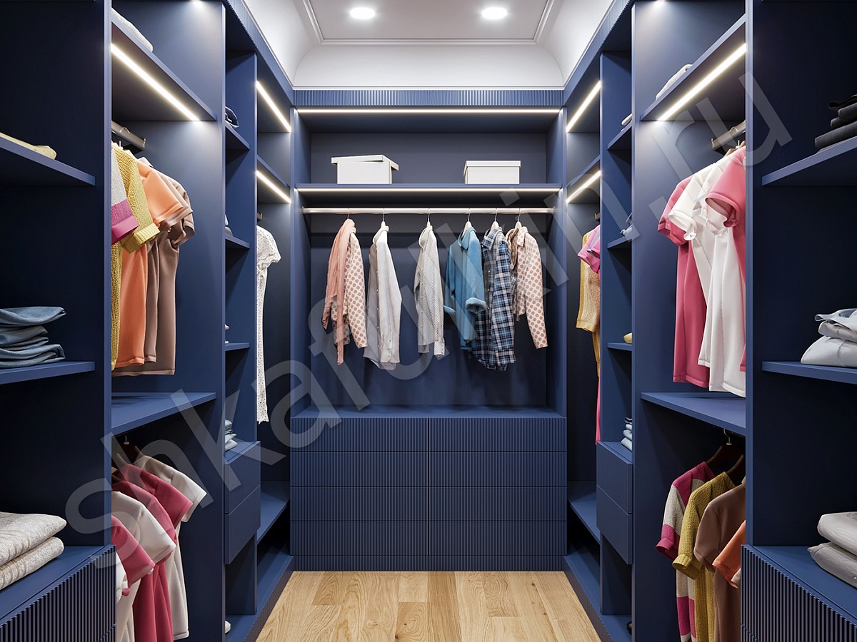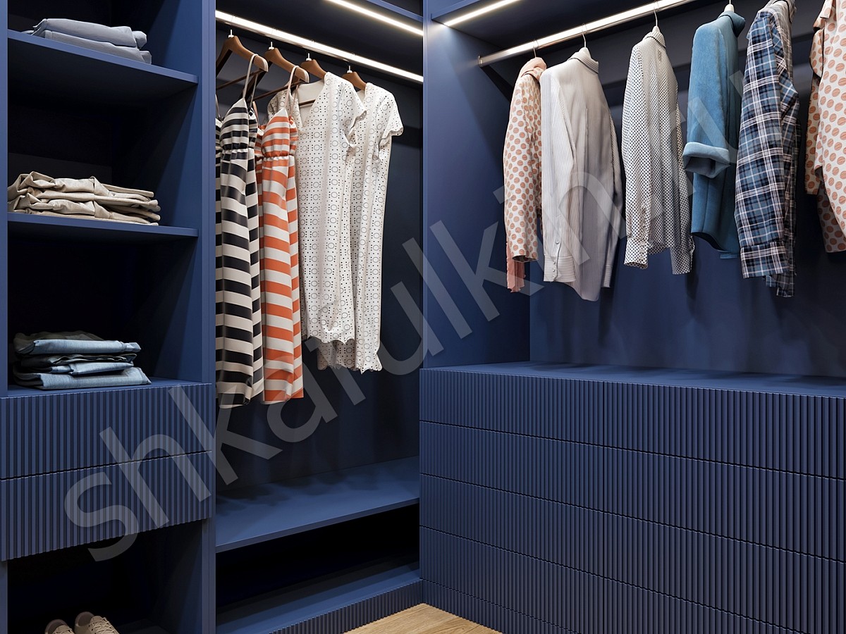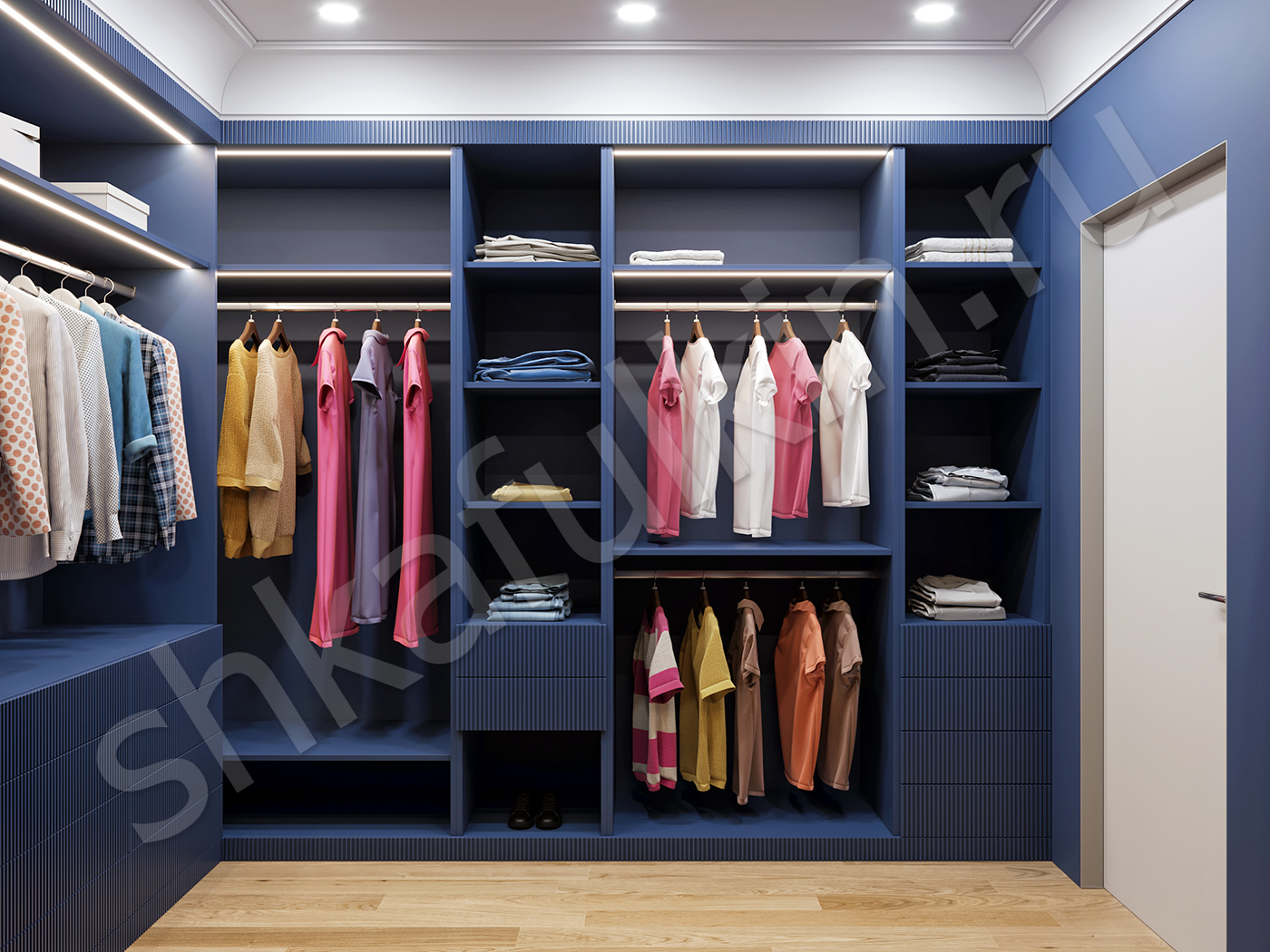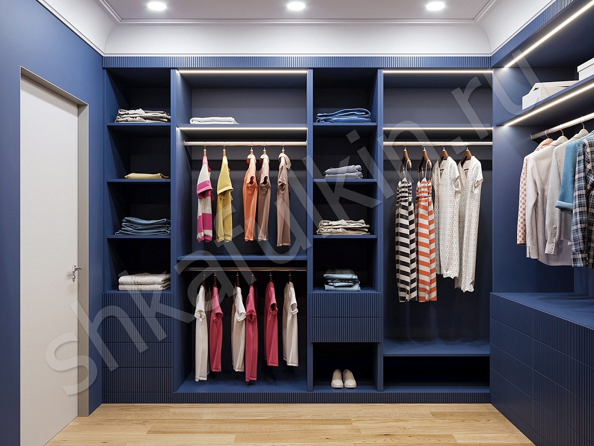 Порядок в доме начинается с вместительной гардеробной комнаты. Чтобы не загромождать мебелью спальню, одежду можно аккуратно разместить на полках встроенного гардероба. Так они займут намного меньше места с большей пользой. Более того, представьте, как приятно зайти в помещение, где все элементы гардероба перед глазами, что поможет сократить время утренних сборов.Корпус: ЛДСП Egger U504 ST9 (или крашенный RAL5000).