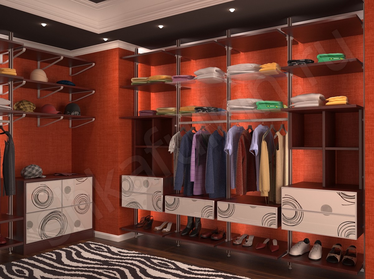 Стильная гардеробная комната необязательно должна быть яркой и насыщенной декоративными элементами. Она может состоять из простых, незамысловатых конструкций. Достаточно небольшого акцента, чтобы гардеробная выглядела современно и эффектно. Представленные на фото гардеробные шкафы, изготовлены именно по такому принципу. Лаконичные формы и интересный рисунок на дверках и выдвижных ящиках комодов и тумбочек сделают вашу гардеробную неповторимой. Расцветку вы можете выбрать на свой вкус, в нашем каталоге представлено более 180 различных вариантов.
