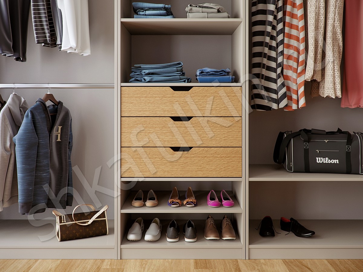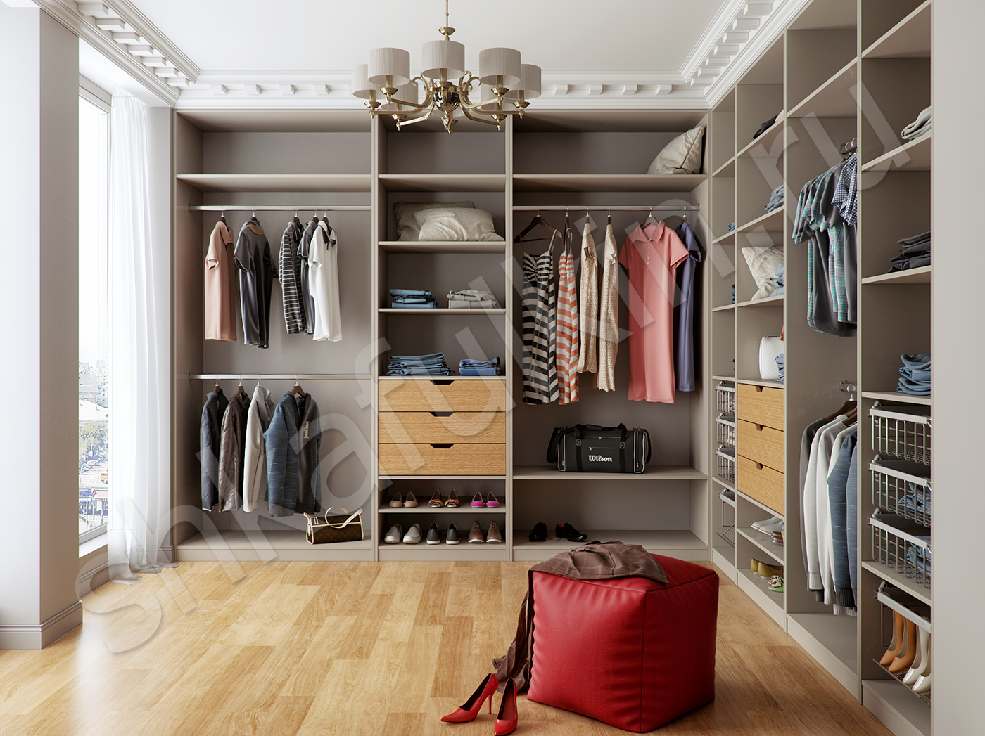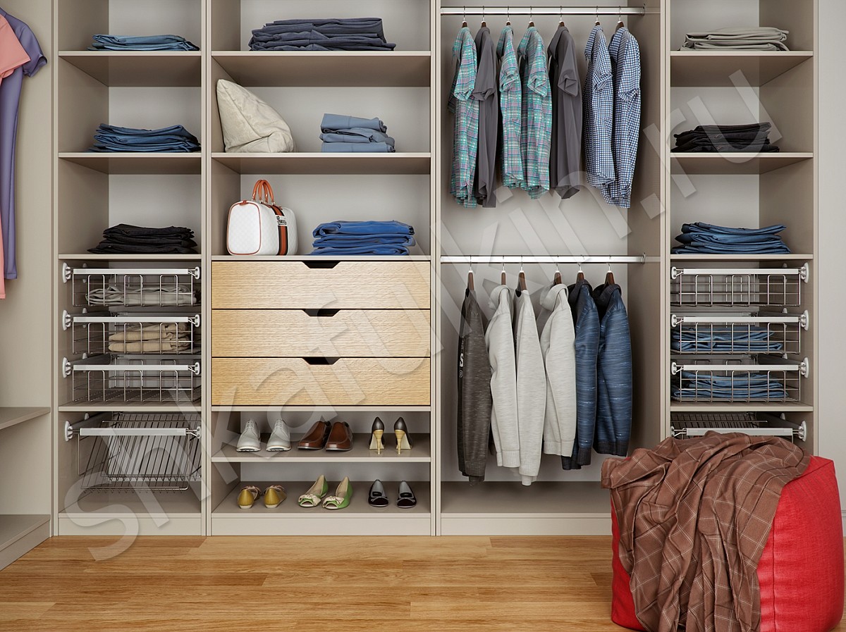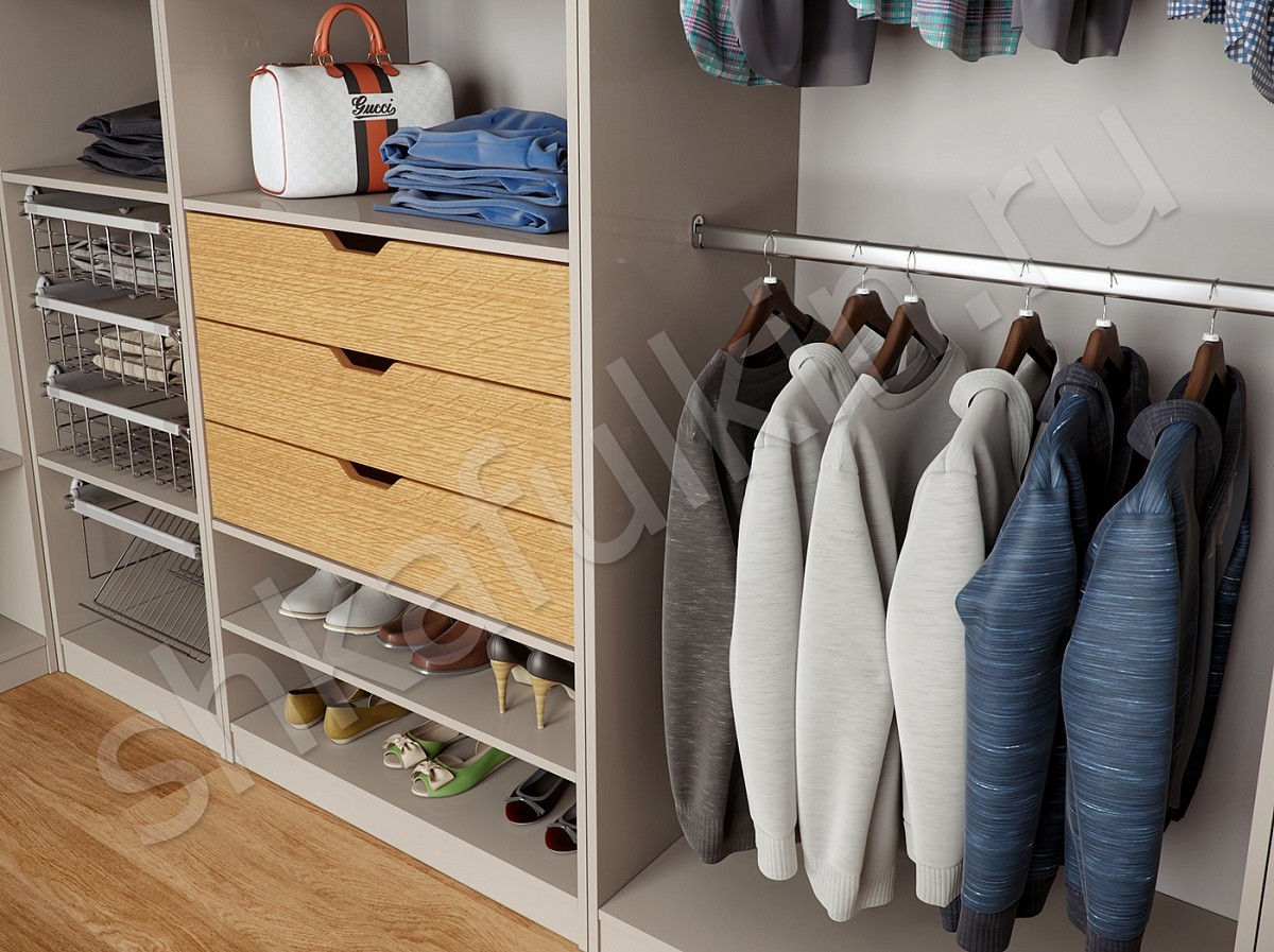 Наполнение: полки, выдвижные штанги, обувницы, корзины, ящики.