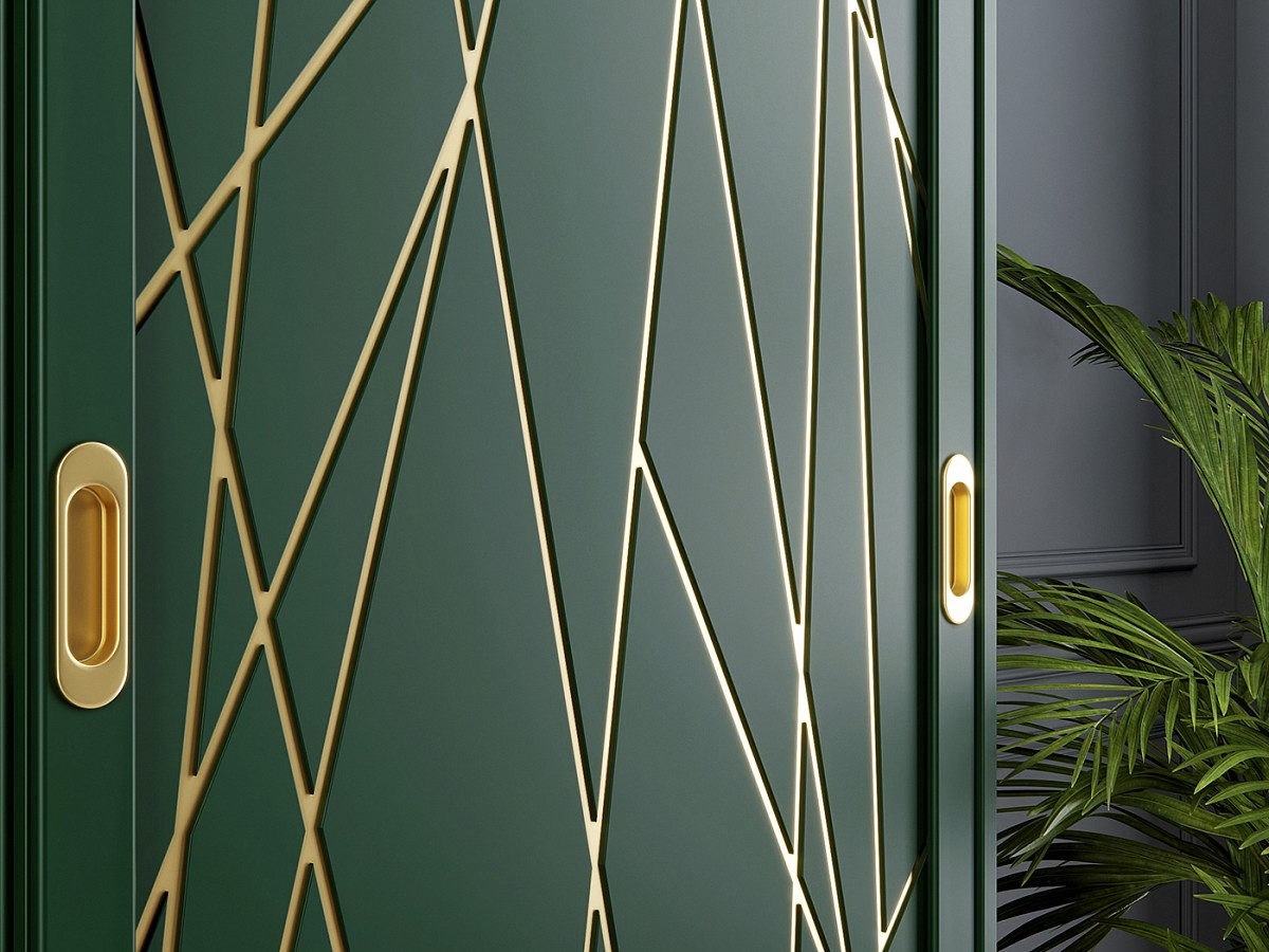 Двери: МДФ с покраской по каталогу NCS с фрезеровкой и золотой патиной или фотопечатью.