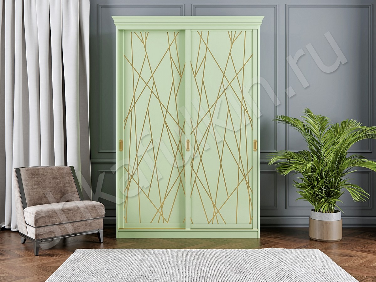 Стильный шкаф-купе станет украшением вашей спальни или гостиной. Двери-купе выполнены с фрезерованными фасадами и нанесением серебряного рисунка, также возможно изготовление таких фасадов с фотопечатью. Для того, чтобы шкаф стал гармоничной деталью интерьера, необходимо учитывать те цвета, которые уже используются в помещении. Лучше, чтобы эти цвета сочетались или работали на контрасте. Не стоит использовать в оформлении шкафа более двух цветов, особенно если в интерьере присутствуют другие цвета.