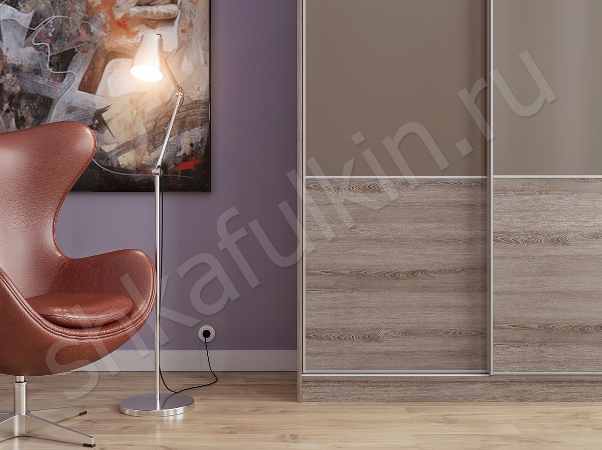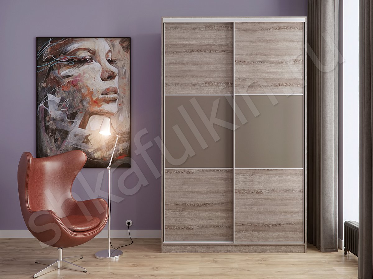 Корпусный шкаф-купе "Джоли" - настоящая находка для небольших помещений. Сочетание древесно-подобной текстуры с матовым стеклом создают законченный образ для интерьера спальни или гостиной. Такая расцветка шкафа не перегружает общую концепцию и подойдет как для пастельных тонов стен, так для ярких и насыщенных. Тонкий алюминиевый профиль выглядит аккуратно и выгодно подчеркивает сочетание двух разных фактур - дерева и стекла.