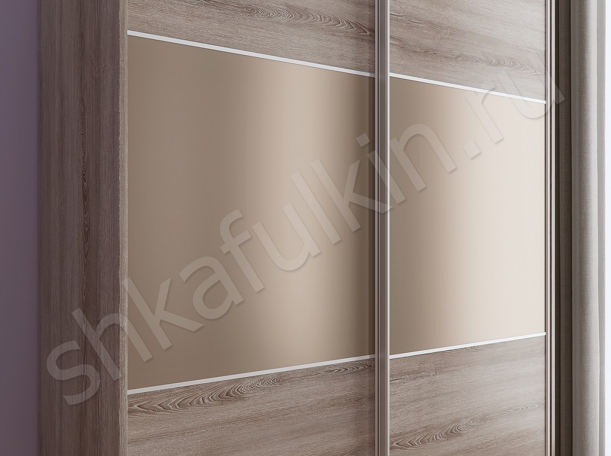 Двери: ЛДСП с делителями, вставка матовое стекло Бронза, пленка безопасности, шлегель, тихоходные ролики.