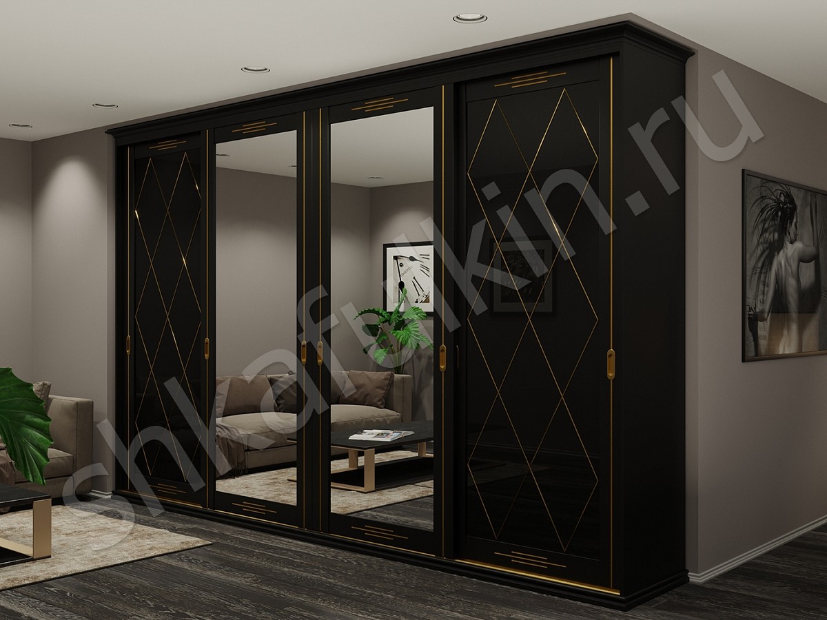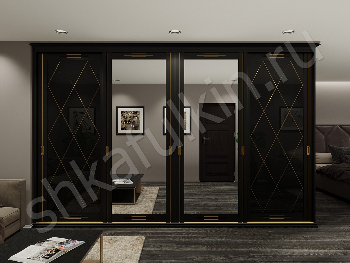 Дизайн шкафа-купе Джонатан сочетает в себе изысканность с вечной красотой, поднимая пышность обстановки. Чёрно-золотой дуэт может быть использован в различных стилях, начиная от современного до винтажного и викторианского. Такая комбинация цветов восходит ко времени Древнего Египта, Константинополя и Рима. Не каждый решится на такой дизайн шкафа-купе, но мы готовы предложить вам другие, не менее красивые и изысканные сочетания цветов.