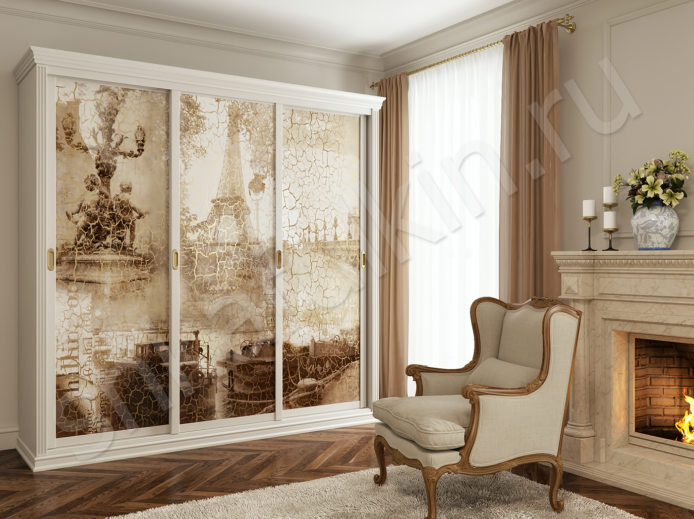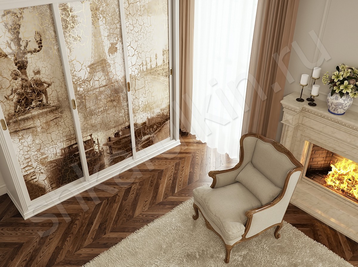Классический стиль всегда в моде, если Вы правильно подберете мебель и грамотно расставите акценты в интерьере. Шкаф-купе "Кракелюр" гармонично сочетает в себе современный шпонированный профиль с врезными ручками и двери-купе с фреской. Фреска издавна считается декоративным материалом для украшения помещения, но современные технологии позволяют использовать такой материал при изготовлении шкафов-купе. На данной модели шкафа-купе фреска выполнена с эффектом старины и растрескивания штукатурки. Такой шкаф-купе станет главной достопримечательностью Вашего дома.