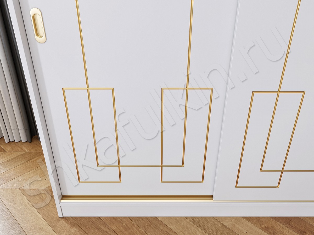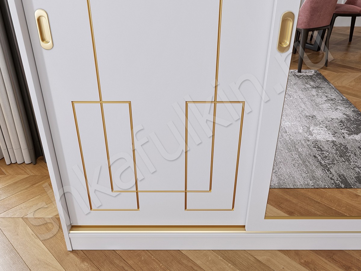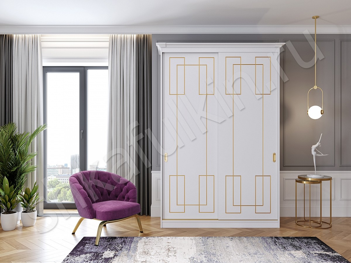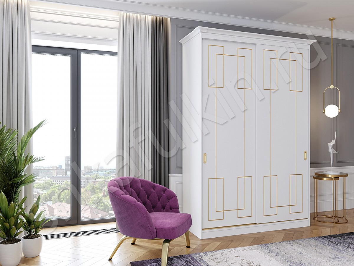 Шкаф-купе "Маренго" - сочетание строгой формы, лаконичного дизайна и изящного декора в виде золотой патины. Такой шкаф - купе подойдет для спальни или гостиной и отлично впишется в интерьер. Выберите нужное наполнение и шкаф станет не только красивым, а также функциональным и удобным элементом Вашего интерьера. Мебель может быть выполнена в любом цветовом решении.