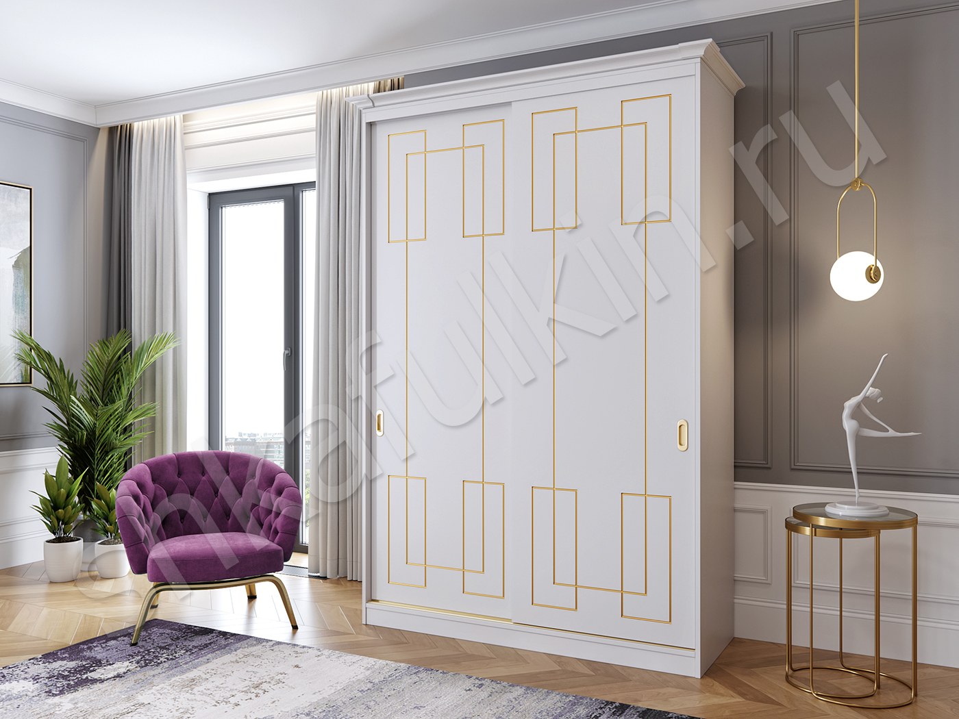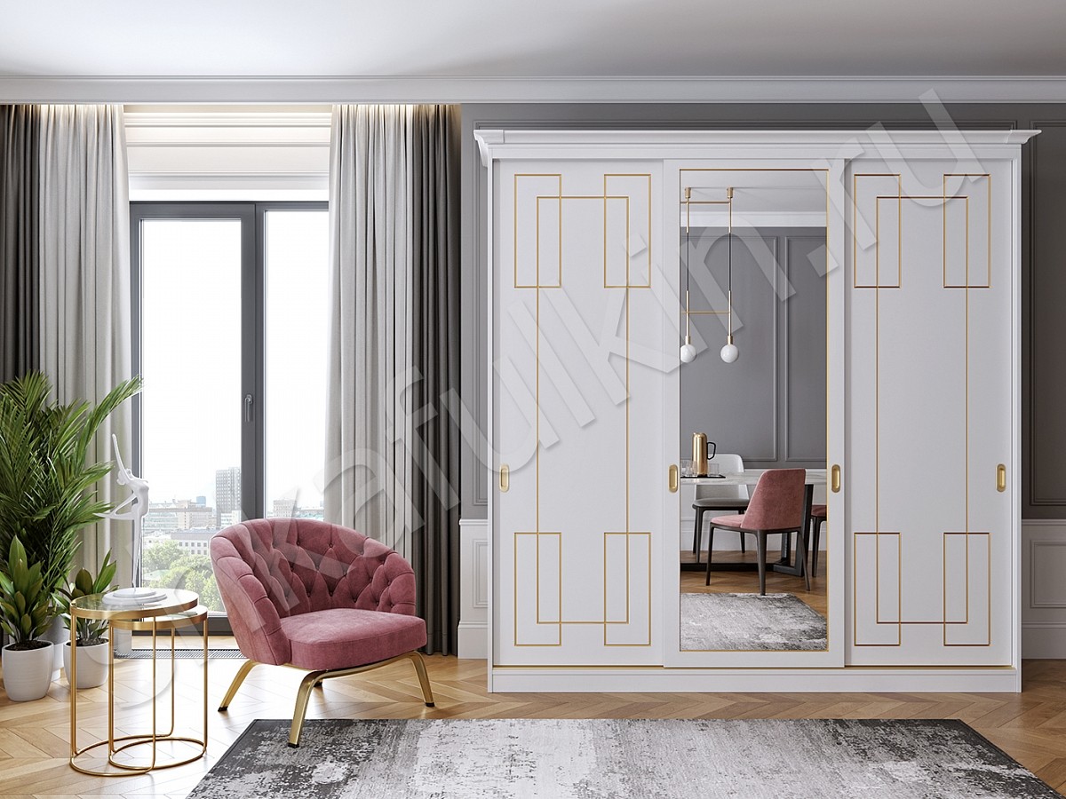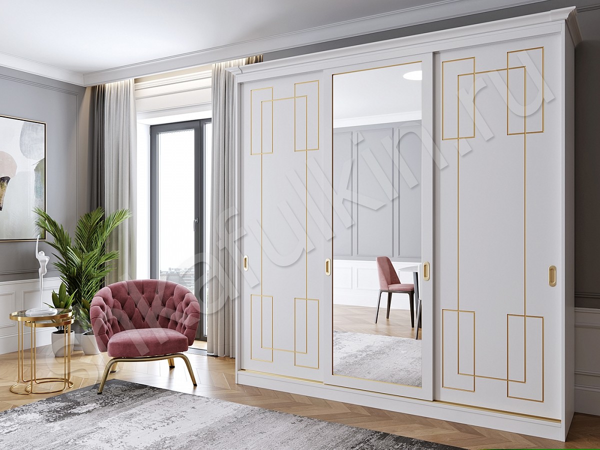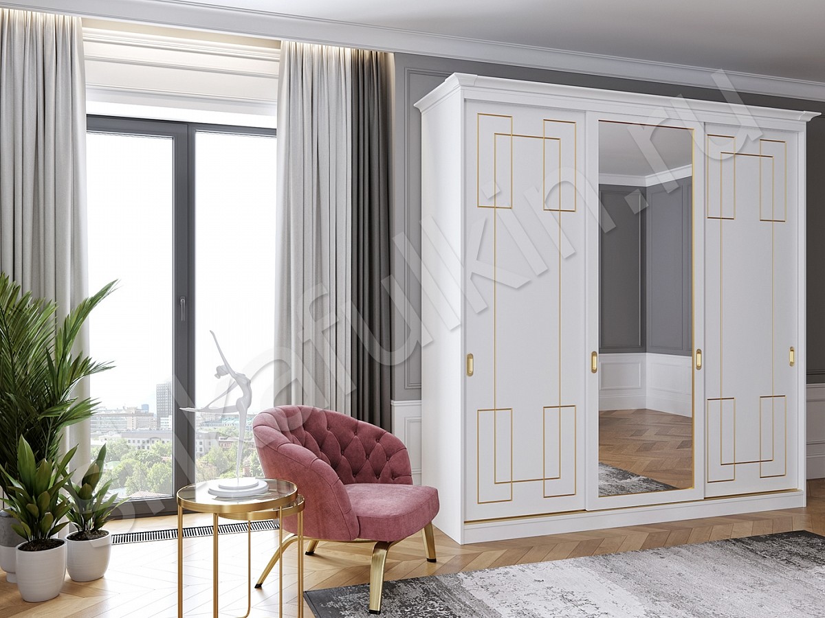 Шкаф-купе "Маренго" - сочетание строгой формы, лаконичного дизайна и изящного декора в виде золотой патины. Такой шкаф - купе подойдет для спальни или гостиной и отлично впишется в интерьер. Выберите нужное наполнение и шкаф станет не только красивым, а также функциональным и удобным элементом Вашего интерьера. Мебель может быть выполнена в любом цветовом решении.