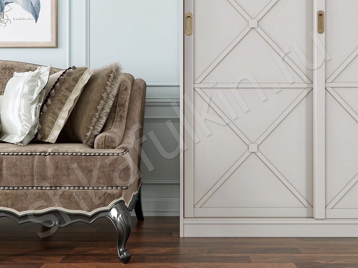Изысканный стиль и безупречная фактура шкафа-купе "Марсель" выгодно подчеркнут интерьер в классическом стиле. Не для кого не секрет, что белый цвет визуально расширяет пространство, делает его более легким и воздушным. Даже такой массивный предмет мебели, как шкаф, выполненный в белом цвете, не будет перегружать пространство. Пастельный цвет стен и светлый шкаф-купе создадут атмосферу воздушности и легкости в интерьере. Для напольного покрытия можно использовать более темные породы древесины, но только в ламинированном варианте, иначе уборка полов станет основной причиной недовольства домочадцев. Бесконечно светлая отделка помещения вкупе с белоснежной гаммой мебели несколько утомляет взгляд, ведь нашему зрению необходима фокусировка на темных, ярких деталях, чтобы сделать жизнь разнообразнее и интереснее. Такими предметами могут стать аксессуары, лампы, светильники, мягкая мебель и настенные картины.