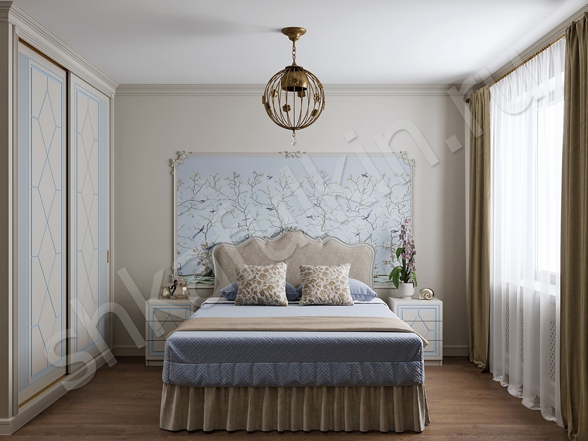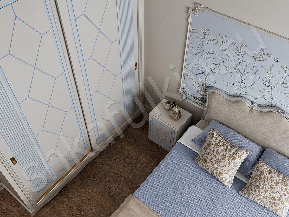 Шкаф-купе встроен в нишу и прекрасно дополняет интерьер в стиле современной классики, не перегружая пространство.