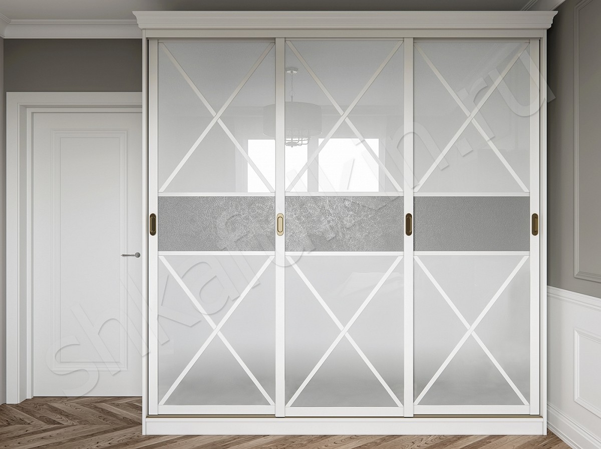 Двери: стекло Лакобель с делителями, вставки из искусственной кожи, пленка безопасности, шлегель, позиционер, тихоходные ролики.Корпус: на выбор более 180 цветов ДСП, МДФ, Шпон, Глянец.