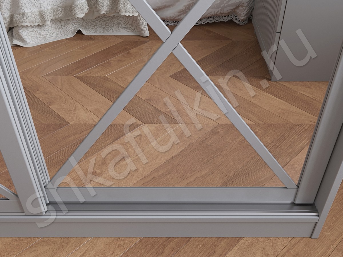 Двери: зеркало с делителями, пленка безопасности, шлегель, позиционер, тихоходные ролики.