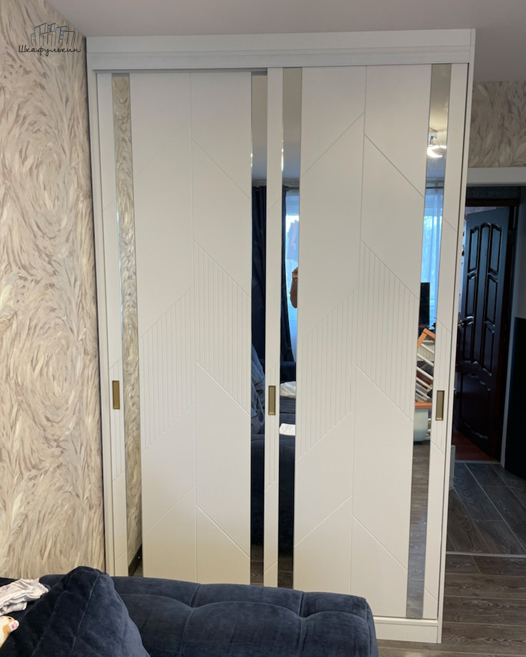 Фасады: МДФ с фрезеровкой и зеркальными вставками покрашенный по NCS S 0300-N.
