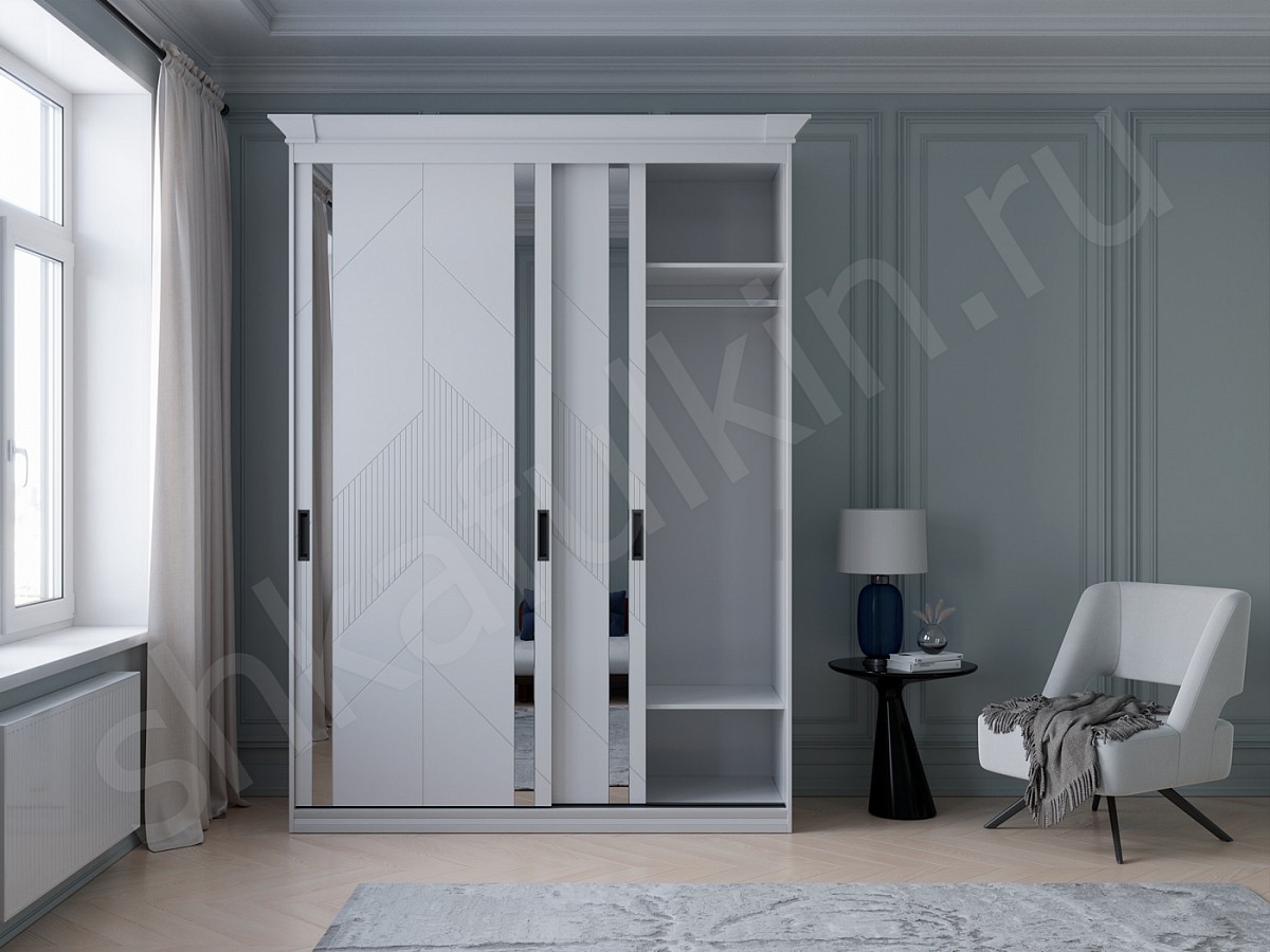 Классический стиль идеально подходит для обустройства спальни, так как отличается мягкостью оттенков и плавностью линий. Шкаф-купе Хадсон гармонично дополнит любое по размерам помещение. Шкаф-купе отлично сочетается с кроватью и другими элементами в спальне. Наполнение изготовим по вашим предпочтениям.