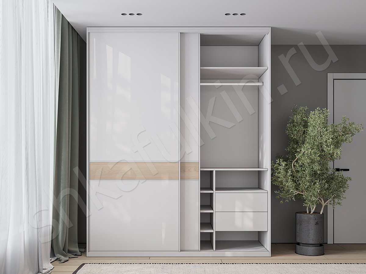 Фасады: ЛДСП Egger Белый Премиум/ЛДСП Egger Акация Лэйклэнд.