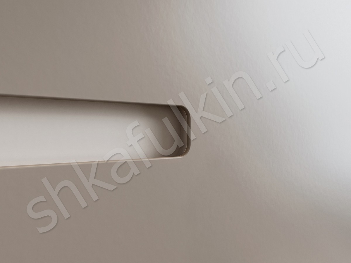 Фасад из МДФ 25мм с фрезеровкой и интегрированными ручками, крашенный по NCS S 2005-Y50R и NCS S 4005-Y50R.