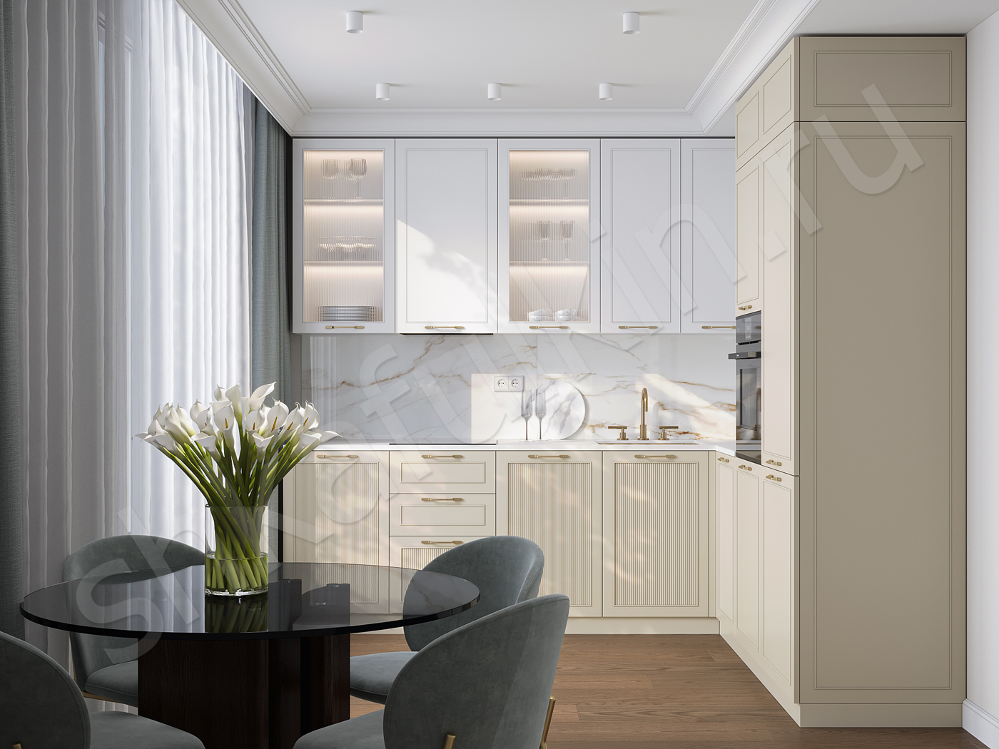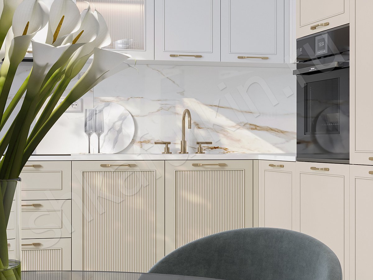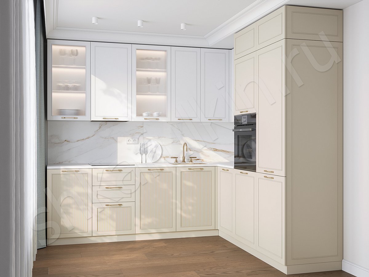 Фасады: МДФ крашенная по NCS/рифленое стекло moru.