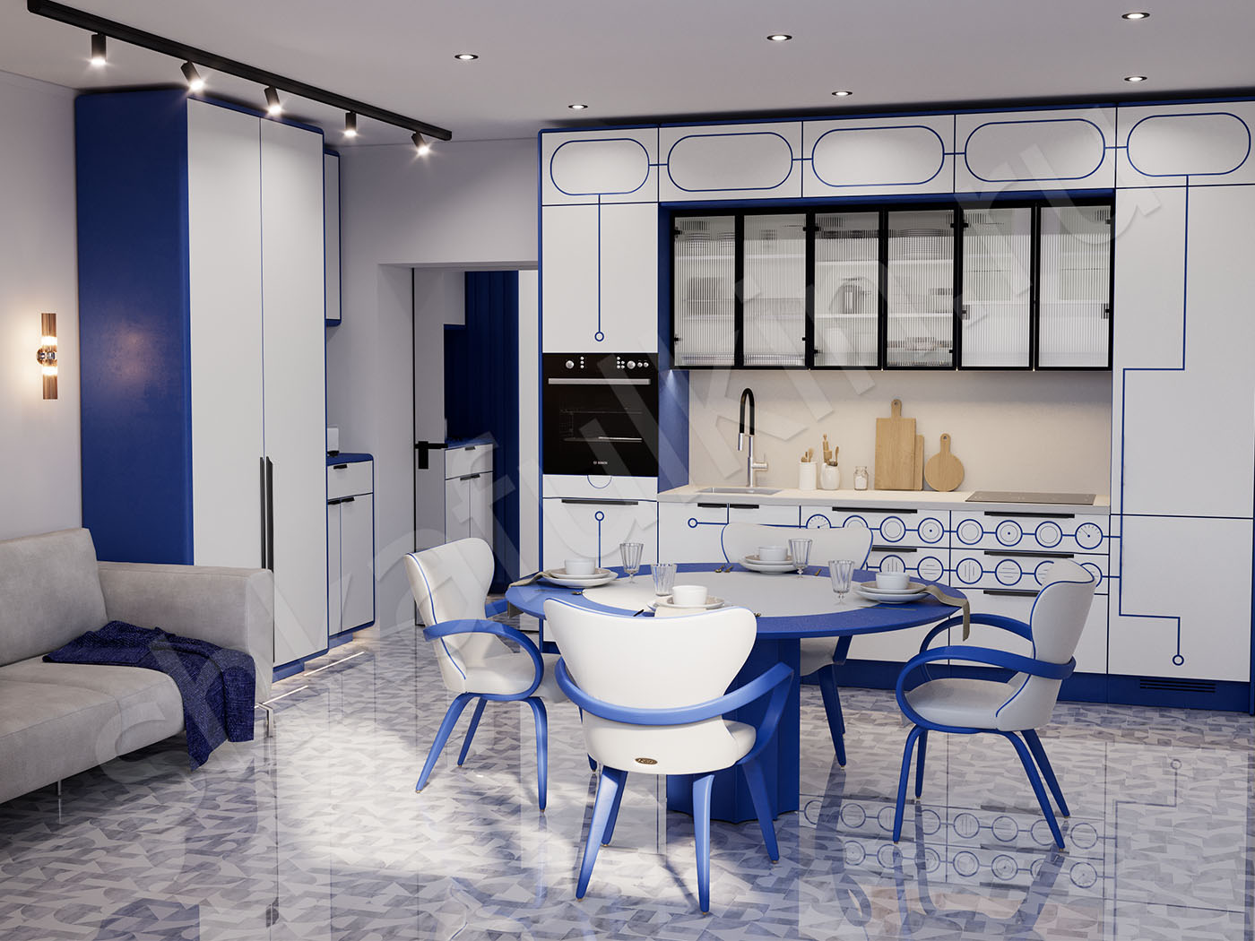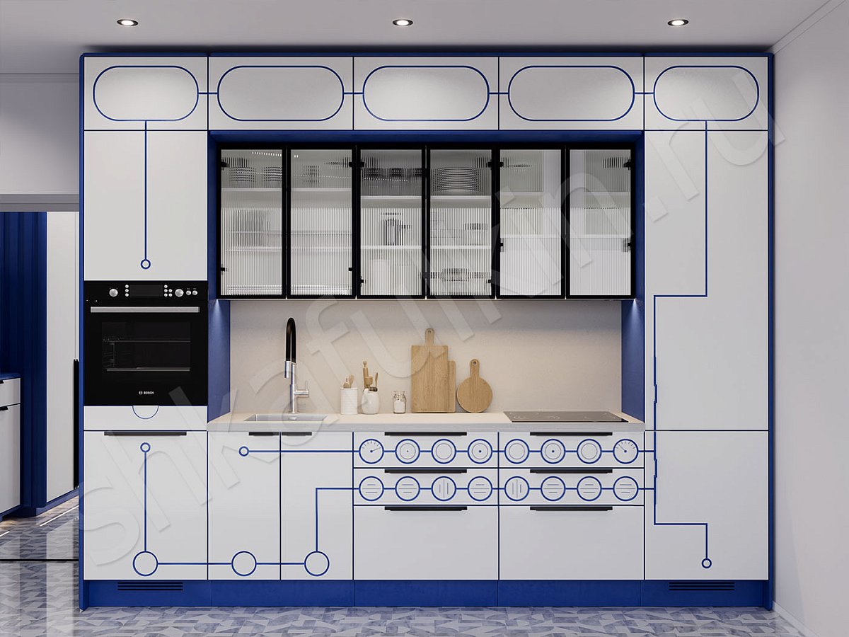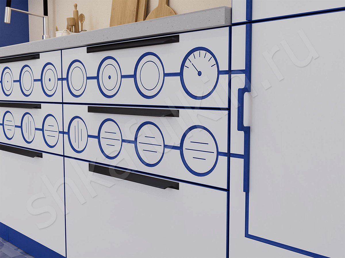 Фасады: МДФ с фрезеровкой, крашенная по NCS.