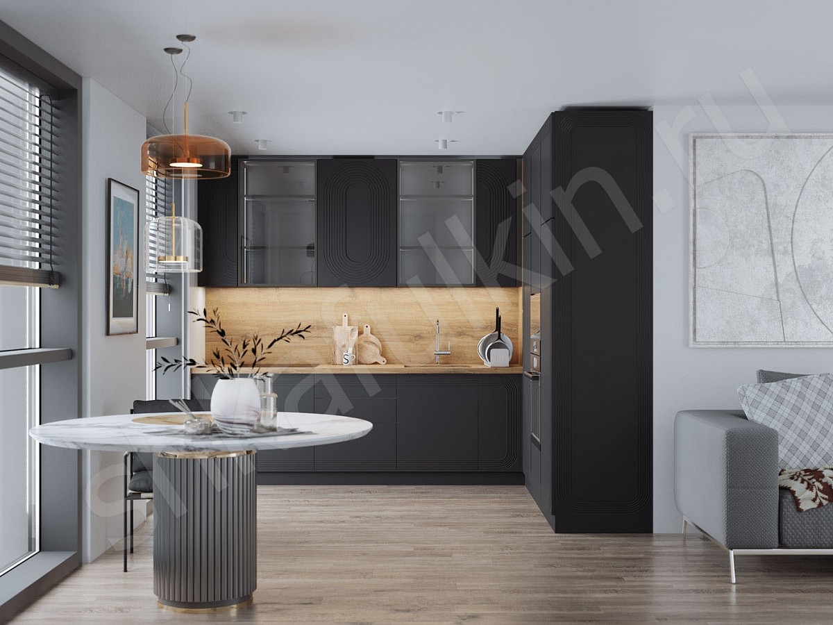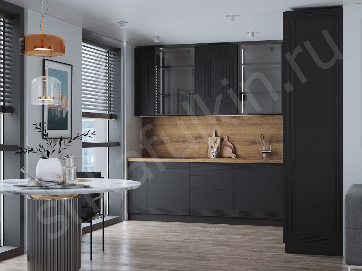 Фасад: МДФ с фрезеровкой, крашенная NCS.