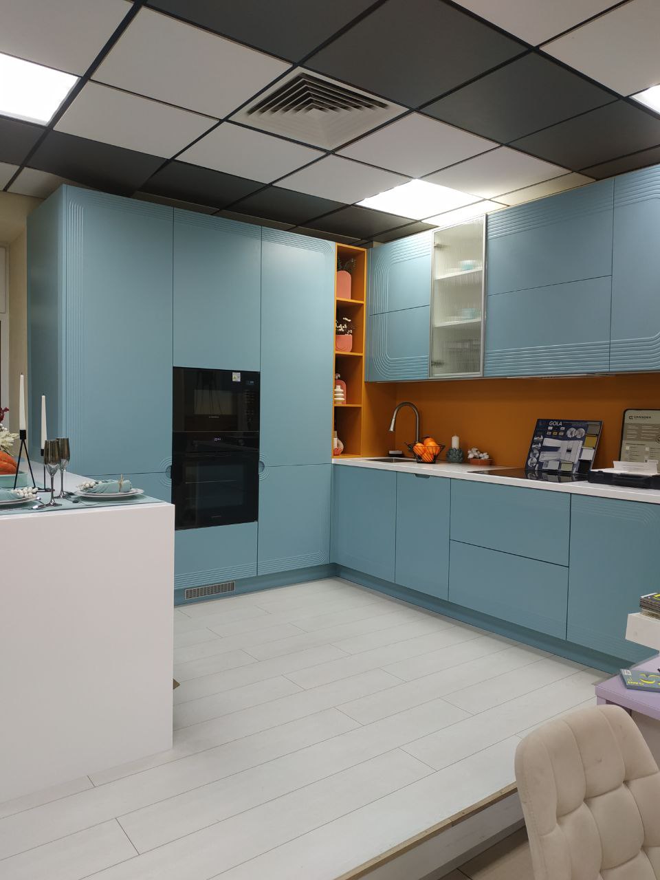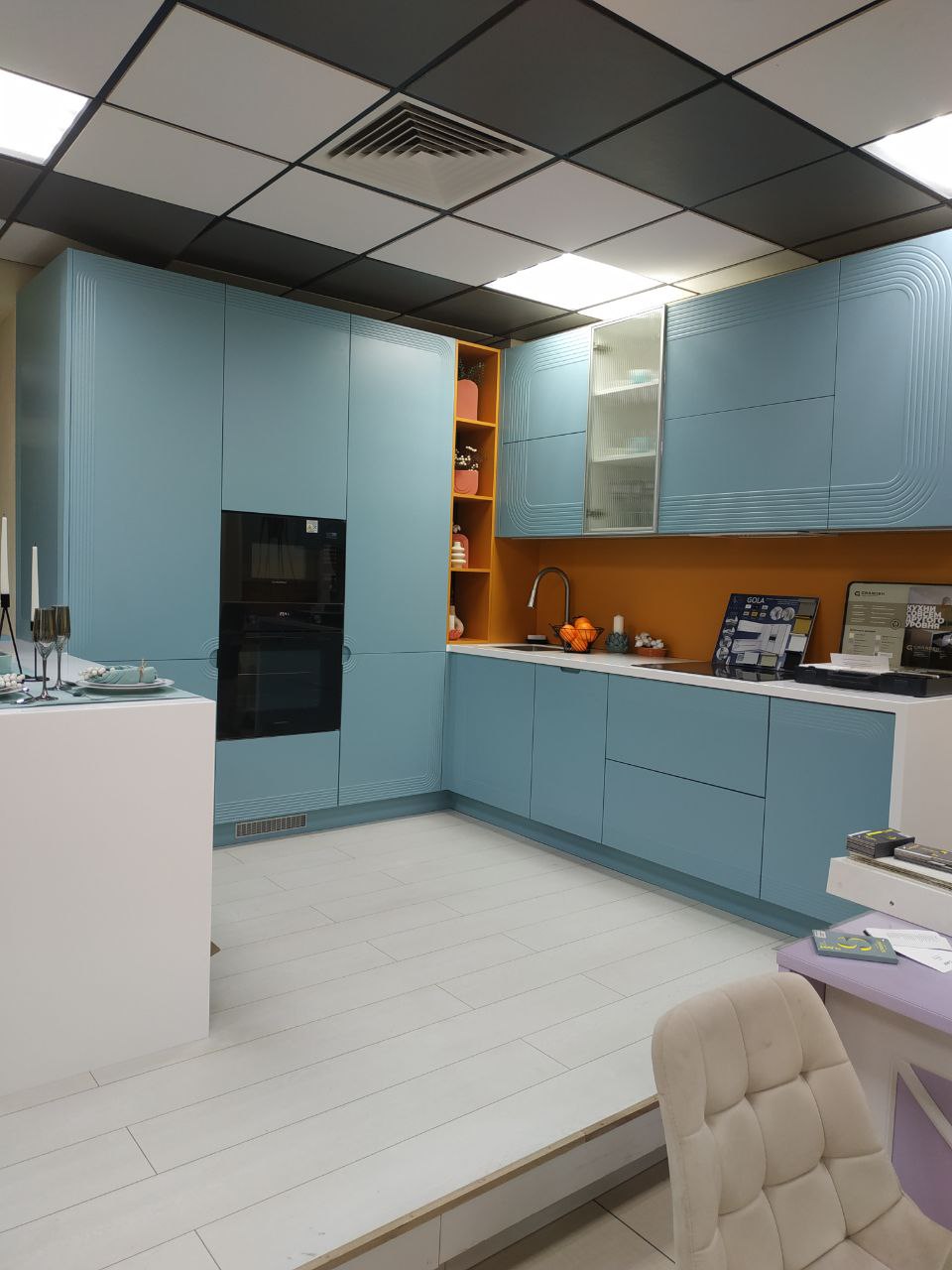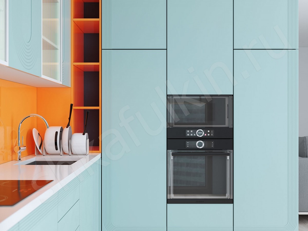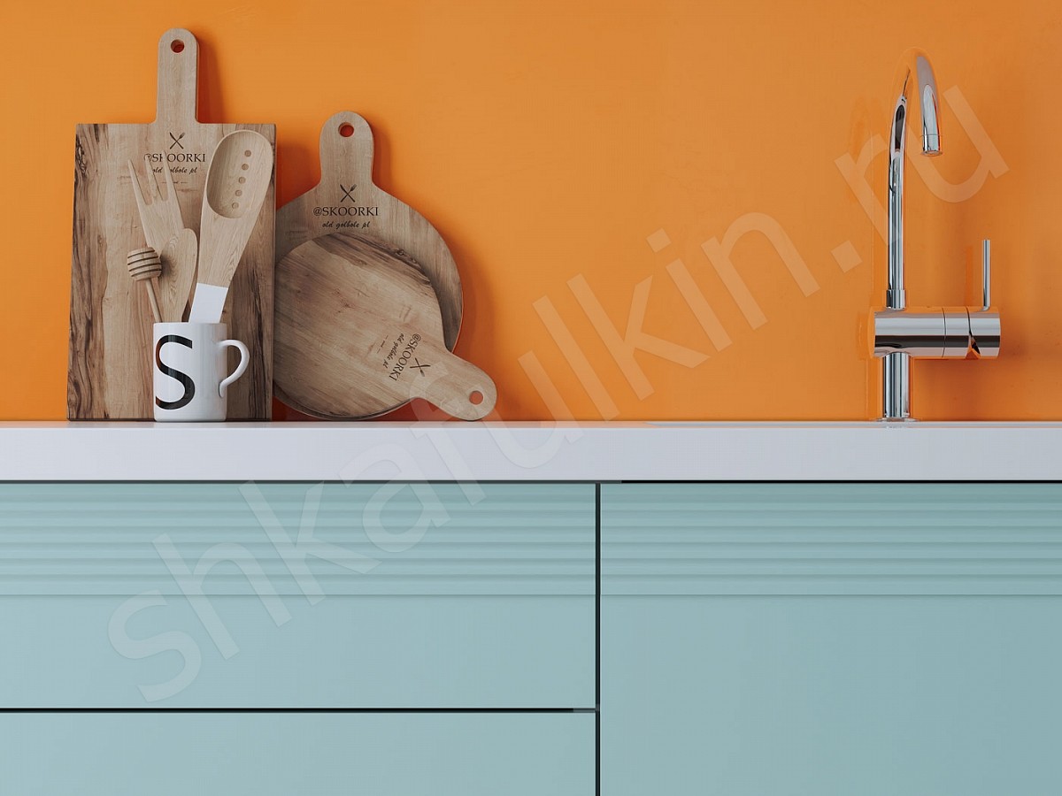 Фасад: МДФ с фрезеровкой, крашенный NCS - S 2020-B40G.