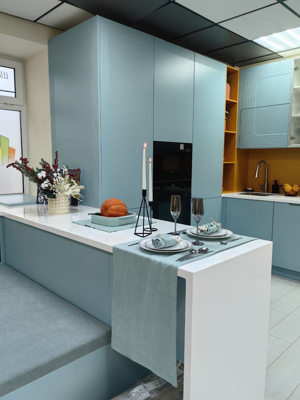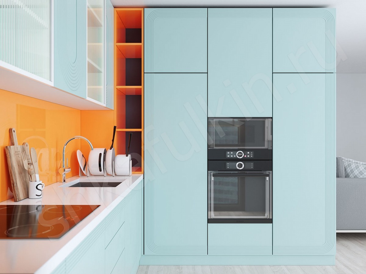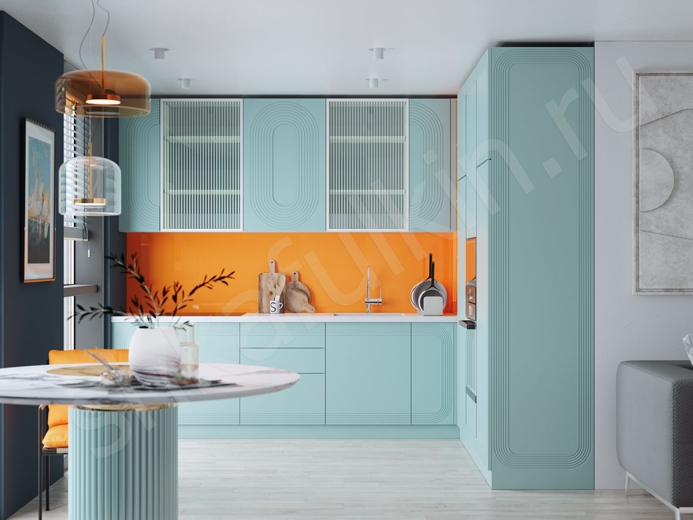 Фасад: МДФ с фрезеровкой, крашенный NCS - S 2020-B40G.